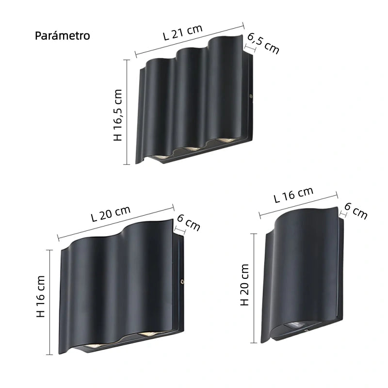 El aplique bidireccional exterior de diseño moderno es ideal para iluminación en jardín y terraza. Fabricado en aluminio inyectado a presión, ofrece una estructura sólida, resistente a la corrosión y al uso prolongado en exteriores. Incorpora LED de alto rendimiento, duradero y de bajo consumo, con diseño de luz bidireccional que proporciona una iluminación uniforme y elegante. Con protección IP65 y certificación CE para un uso seguro en exterior.
