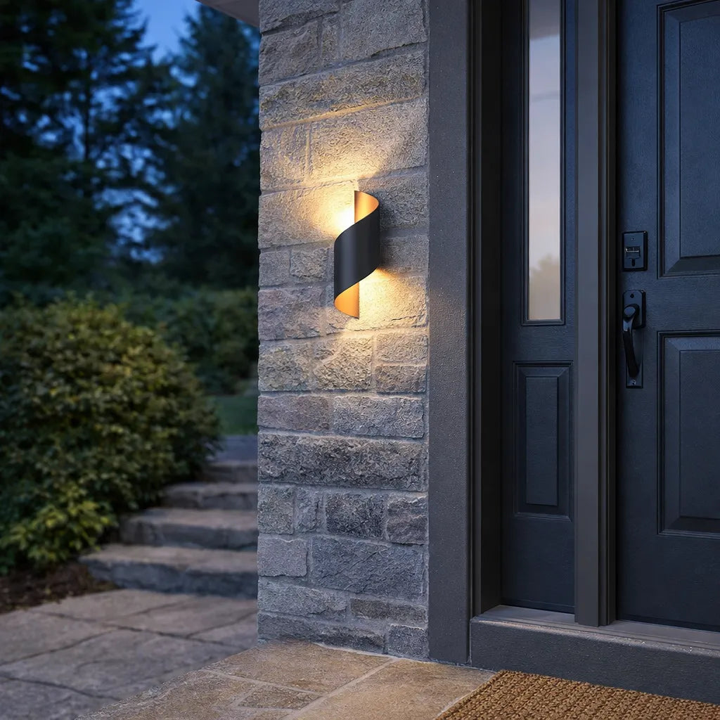 Este aplique de pared exterior bidireccional combina diseño moderno y funcionalidad avanzada. Su elegante forma en espiral convierte cada pared en un elemento decorativo distintivo, mientras la iluminación LED bidireccional crea un efecto luminoso equilibrado y acogedor. Fabricado en aplique de aluminio de alta calidad con acabado metálico, es resistente al uso exterior y ofrece durabilidad, eficiencia energética y un estilo contemporáneo ideal para fachadas, terrazas y entradas.