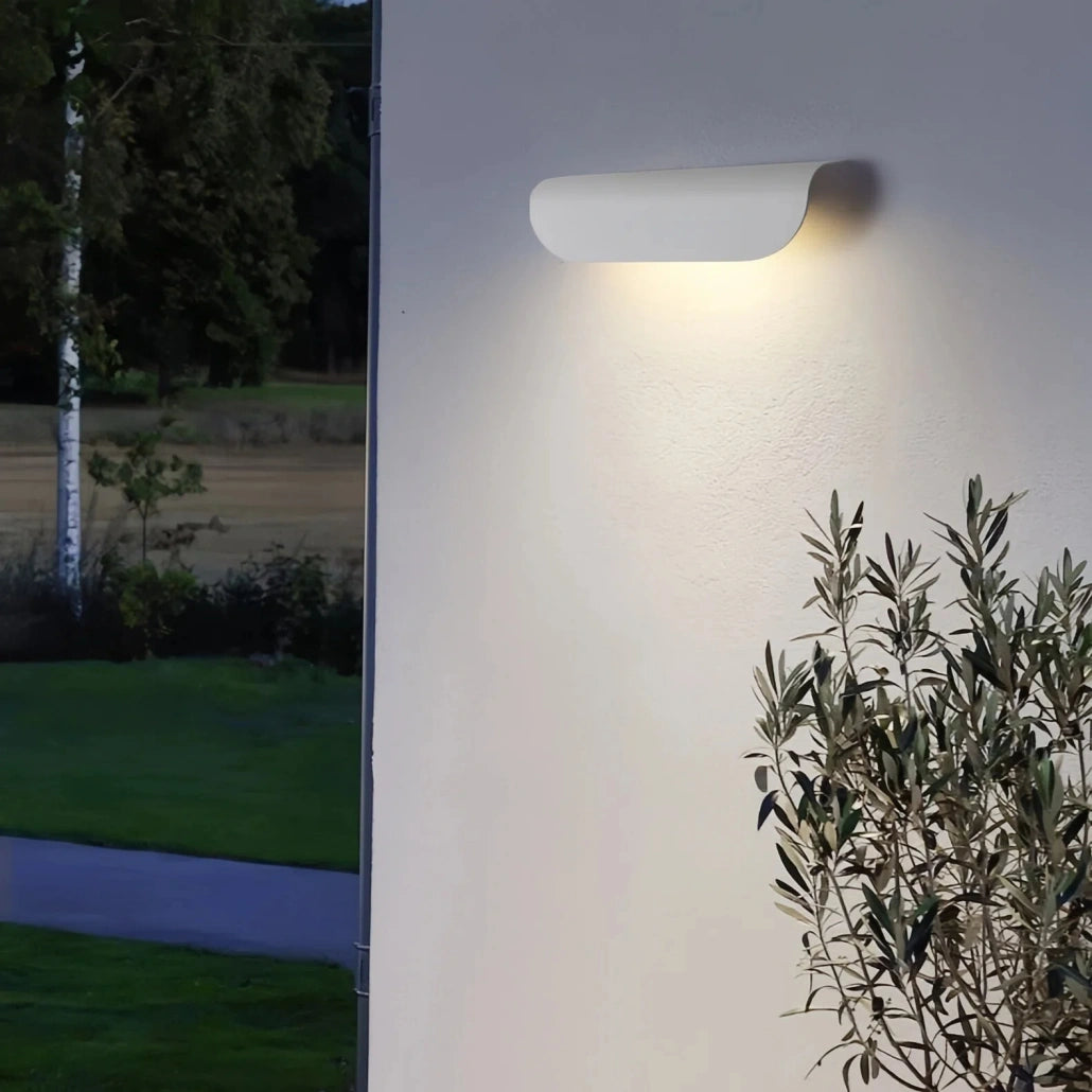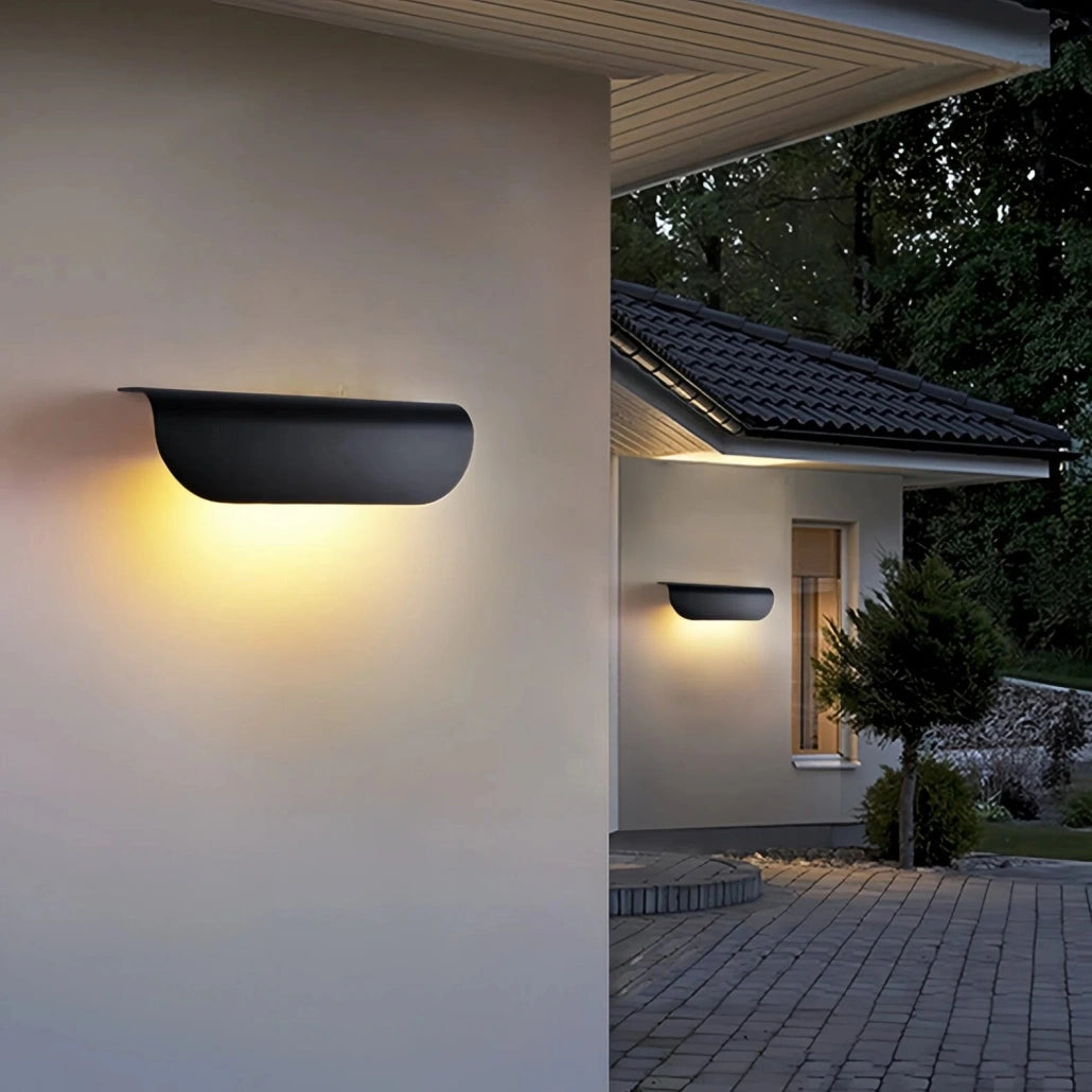 El aplique de pared destaca dentro de los apliques de exterior modernos por su diseño elegante y funcional. Su estructura de líneas curvas y acabado cuidado aporta un estilo contemporáneo, posicionándolo como un sofisticado aplique exterior moderno que combina estética y practicidad. La luz se proyecta suavemente desde la parte inferior, creando un halo cálido, uniforme y sin deslumbramientos, ideal para generar una atmósfera acogedora y segura en exteriores.