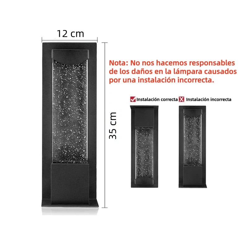 Este Aplique de pared exterior con sensor de movimiento de estilo moderno, ideal para iluminar y proteger espacios exteriores. Fabricado en metal con aluminio engrosado y acabado de oxidación nano, ofrece alta resistencia al óxido y a la deformación. Su pantalla de vidrio con burbujas tipo cristal garantiza una iluminación LED cálida, suave y uniforme sin deslumbrar. Con grado de protección IP65 y certificación CE, es una lámpara con sensor de movimiento fiable para fachadas, entradas y zonas exteriores.