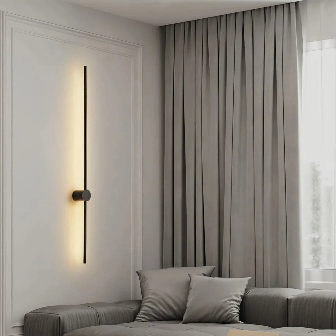 El aplique lineal destaca por su diseño moderno y funcional, siendo una solución versátil dentro del Aplique de pared para interiores contemporáneos. Su estructura estilizada y acabado en negro lo convierten en un elegante aplique negro moderno, ideal para complementar la iluminación en salón o dormitorio.