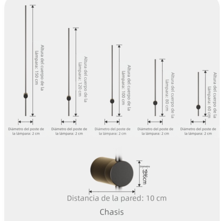 | Tenga en cuenta que puede haber un error de 1-3 cm del tamaño debido a la medición manual. Las imágenes pueden tener un ligero cromatismo debido a la luz y al monitor. Agradecemos su comprensión de antemano. Se recomienda que la instalación de la lámpara sea realizada por un electricista profesional. | |