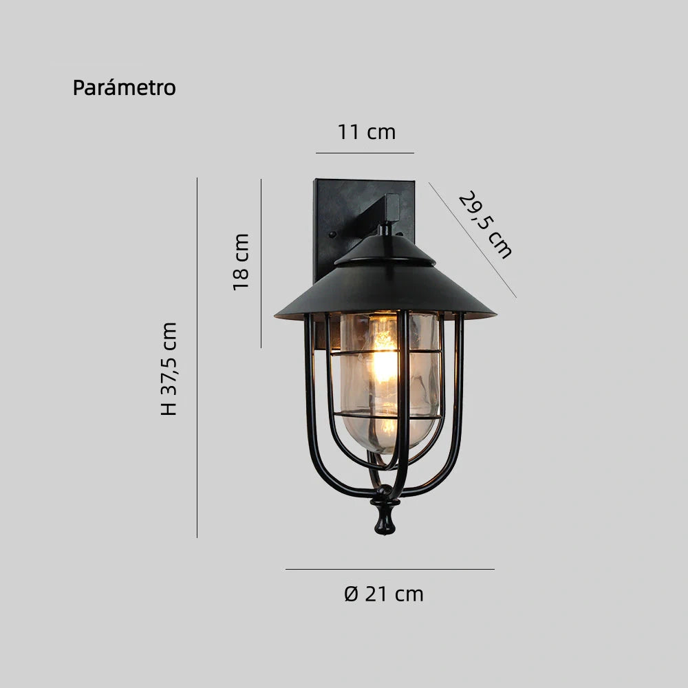 Este aplique de pared exterior vintage combina un diseño industrial con una estructura metálica resistente al agua y al óxido. Su cuerpo de hierro y pantalla de vidrio difuso crean una luz cálida y suave, ideal para pasillos y fachadas. Perfecto para quienes buscan apliques de pared exterior vintage duraderos.