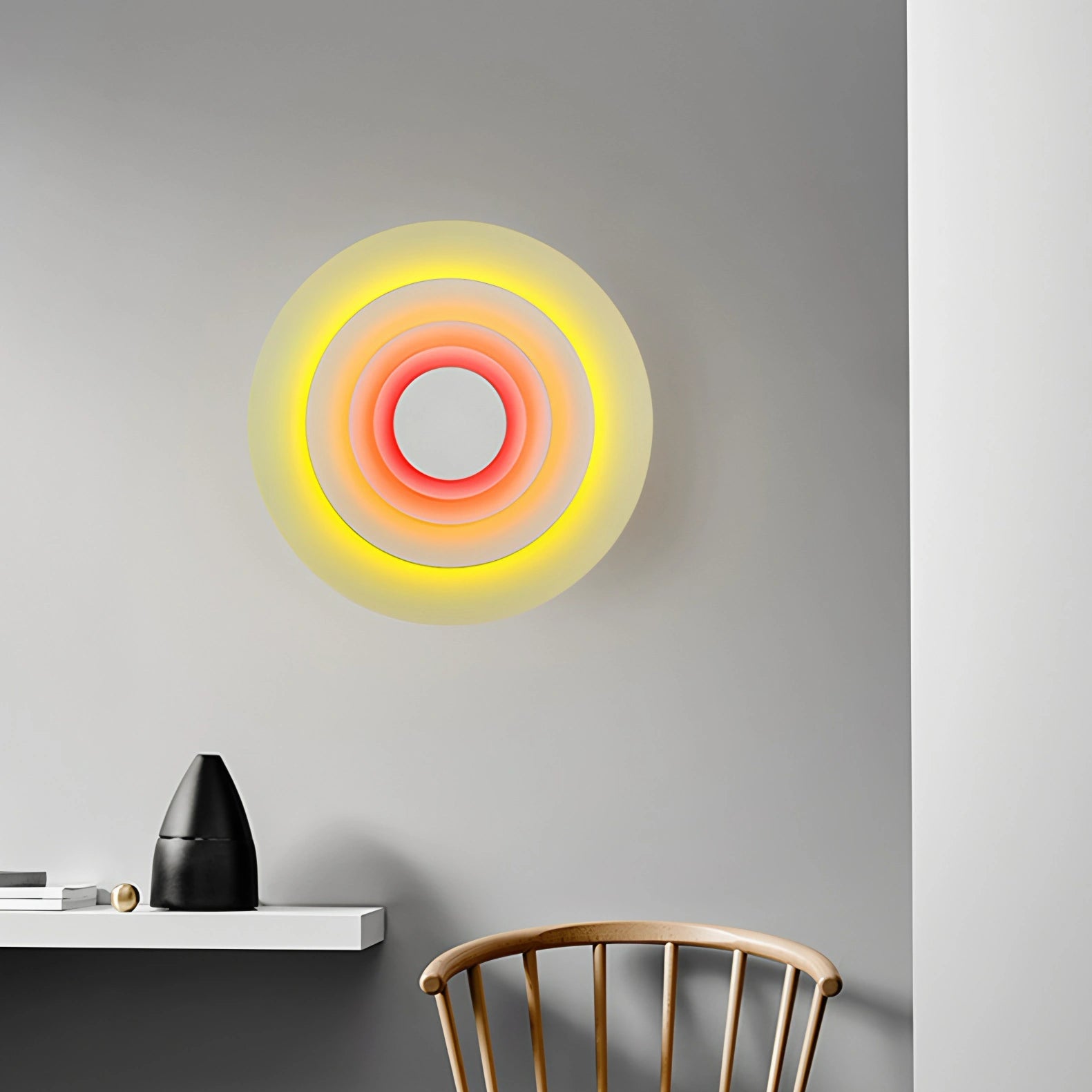 Este aplique de pared moderno de diseño está fabricado en metal de alta calidad y destaca por su armoniosa combinación de cuatro colores y su diseño en capas con gran impacto visual. Incorpora LED integrado que proporciona una iluminación suave y confortable, creando un ambiente romántico y acogedor en el salón o junto a la mesita de noche. Cuenta con certificación CE.