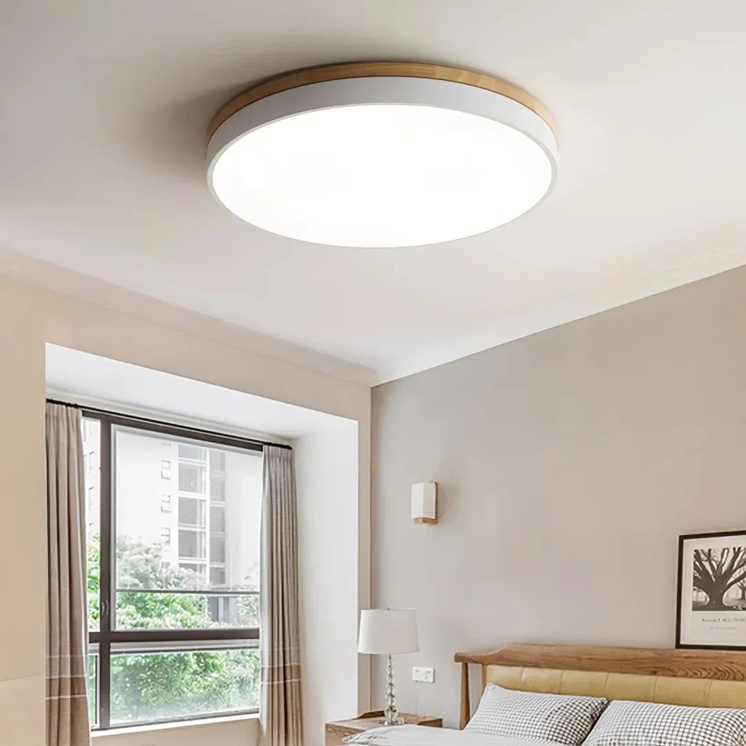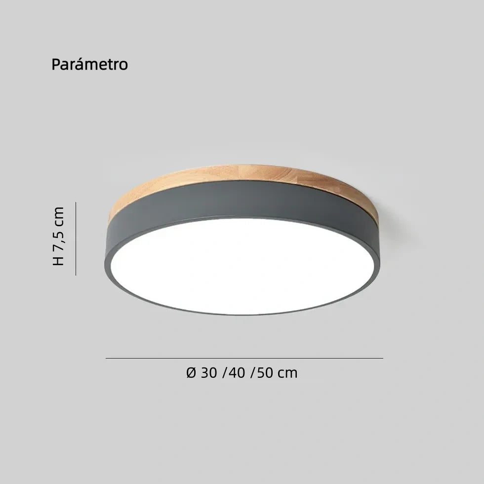 Este plafones redondos para techo combina diseño nórdico y funcionalidad para iluminar dormitorio y salón con elegancia. Fabricado en metal de alta calidad con base de roble macizo trabajada artesanalmente, ofrece gran resistencia y durabilidad gracias a su acabado con múltiples capas de pintura y pulido anticorrosión. Incorpora LED con lente que proporciona luz suave y uniforme. Como plafon techo regulable, permite ajustar intensidad y temperatura de color según el ambiente. Certificación CE. Ideal como plafon techo estilo nordico moderno y acogedor.