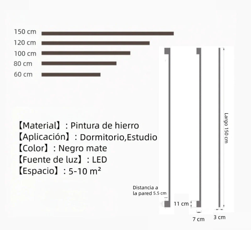 Este aplique lineal pared destaca por su estética depurada y su diseño lineal minimalista, ideal para quienes buscan apliques de pared minimalistas con un toque moderno. Incorpora una fuente LED de alta calidad que proporciona una luz suave y agradable, perfecta para crear ambientes acogedores.