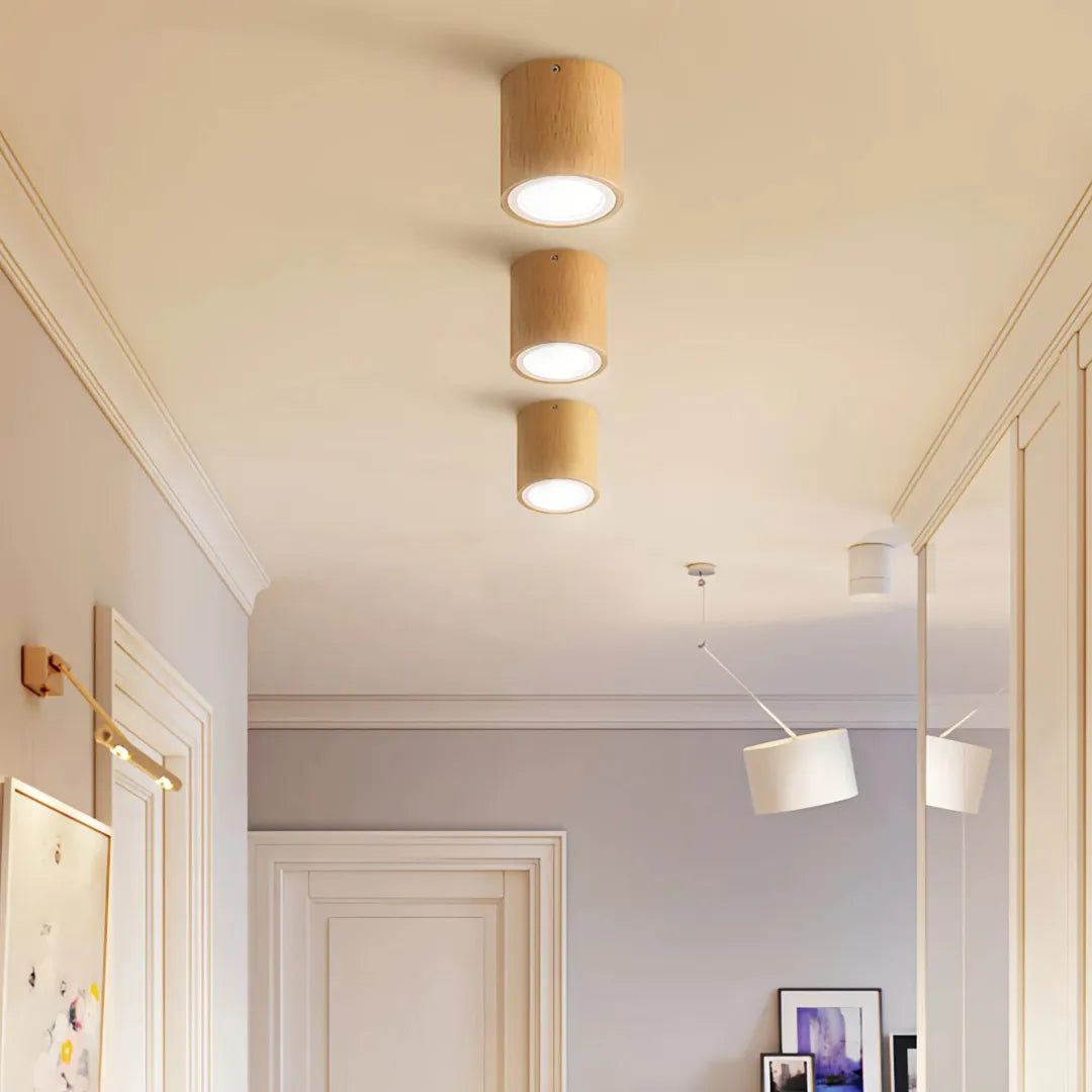 Este downlight led de superficie de estilo nórdico está diseñado con materiales de alta calidad, como madera de caucho y acrílico. La madera presenta un acabado brillante y una alta densidad, lo que la hace resistente a grietas, agua, insectos y humedad. Su difusor PMMA garantiza una excelente transmisión de luz, proporcionando una iluminación uniforme y sin deslumbramientos. Ideal para pasillo, salón y dormitorio, y cuenta con la certificación CE.