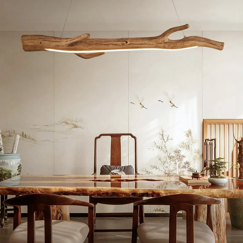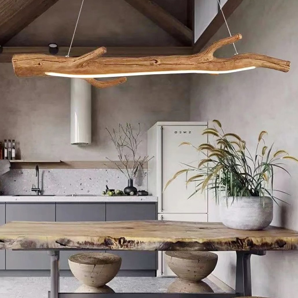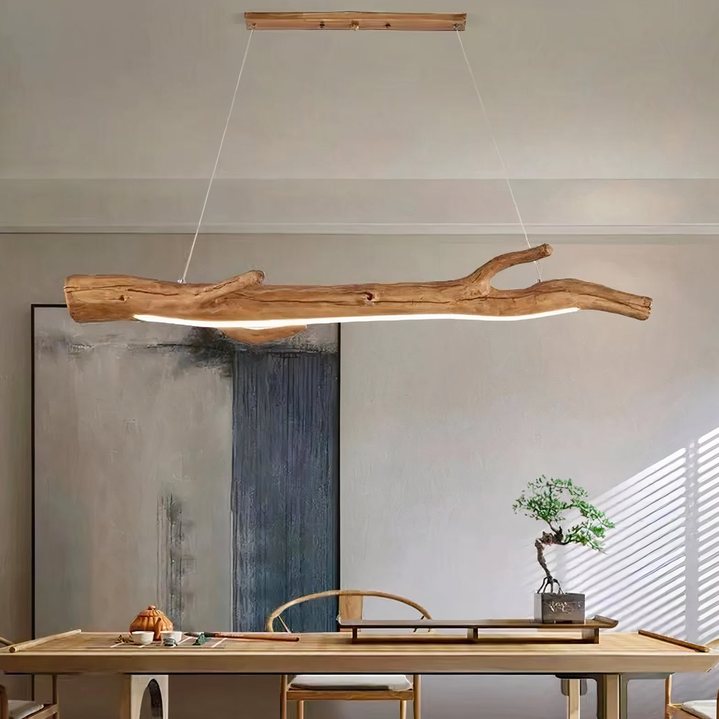 La Lámpara colgante de ramas de resina regulable para comedor combina diseño orgánico y tecnología eficiente para crear una iluminación con carácter. Esta exclusiva luminaria de rama de resina efecto madera de deriva con tira LED reproduce el aspecto natural de la madera flotante con un acabado realista y moderno, ideal para destacar sobre la mesa del comedor.