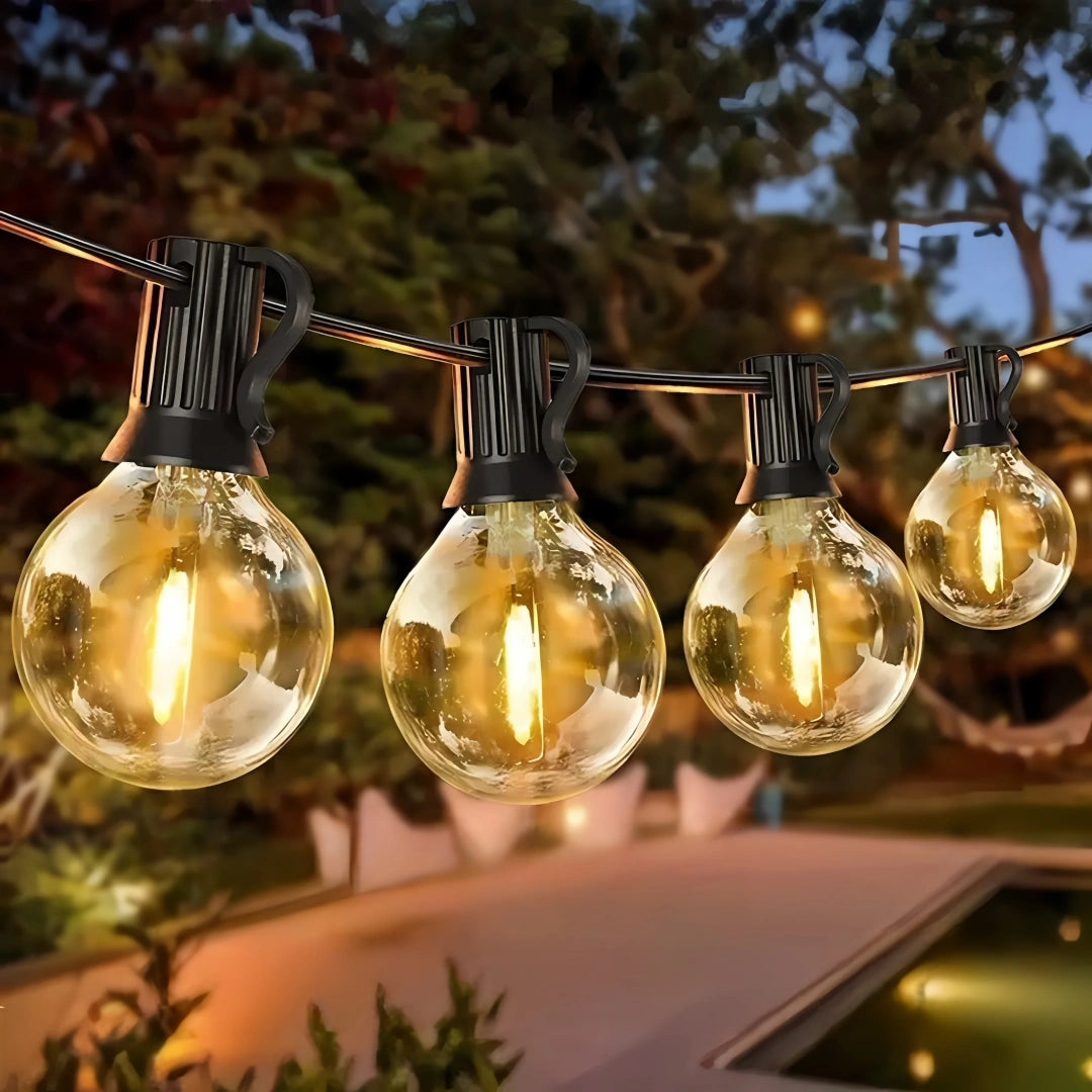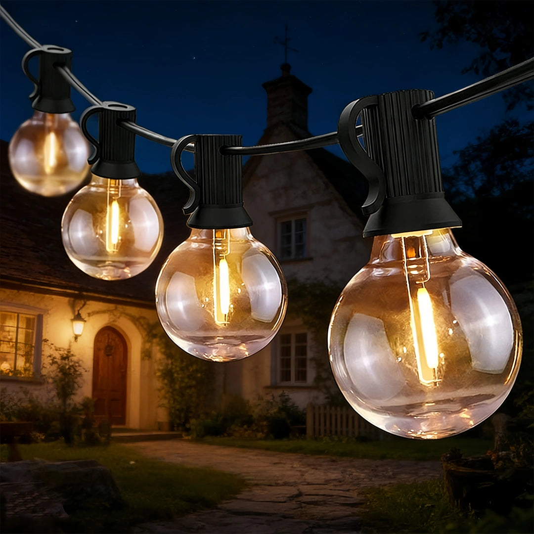 Gracias a su sistema solar, la guirnalda luces exterior solares se carga automáticamente durante el día y se enciende al anochecer sin necesidad de cables, ofreciendo una solución ecológica y de bajo consumo. Es perfecta como guirnalda solar G40 para jardín, facilitando la instalación en cualquier espacio exterior.