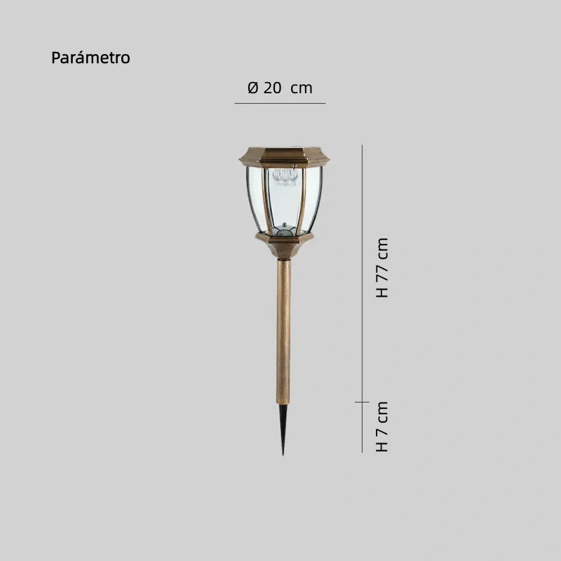 Lámpara estaca para jardín solar LED tipo baliza, ideal para iluminar zonas exteriores como jardín y terraza. Fabricada en metal resistente con pantalla de vidrio de alta transparencia en forma de farol, proporciona una luz suave y no deslumbrante. Funciona con energía solar y tecnología LED eficiente. Incorpora protección IP65 para uso exterior y una estaca reforzada que garantiza estabilidad, resistencia y fácil instalación. Certificación CE.