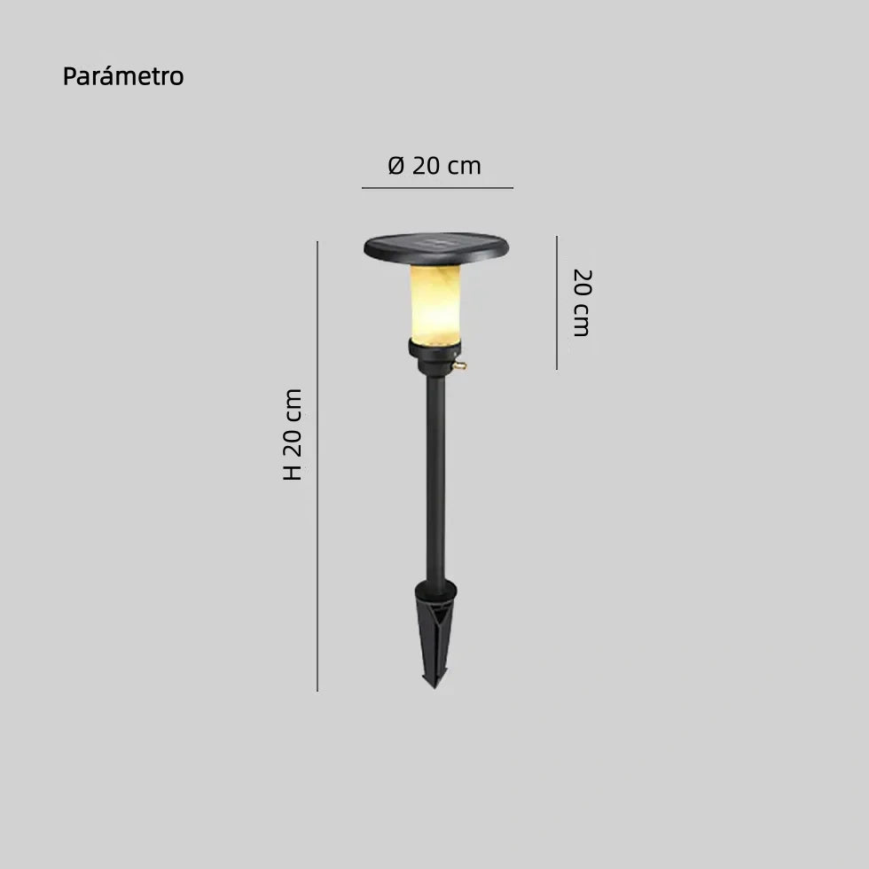 La lampara de jardin estaca LED solar de diseño moderno es ideal para balizas jardin en exterior. Incorpora panel solar de silicio monocristalino de alta eficiencia, ahorro energético y larga autonomía. Su cuerpo de aluminio fundido con acabado mate es resistente al agua y al óxido (IP65). La pantalla de nube de mármol ofrece una luz suave y agradable. Perfecta para jardín y terraza, con certificación CE.