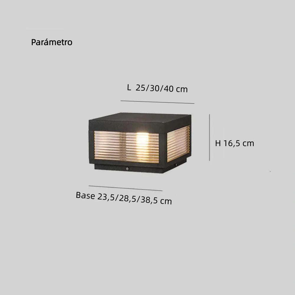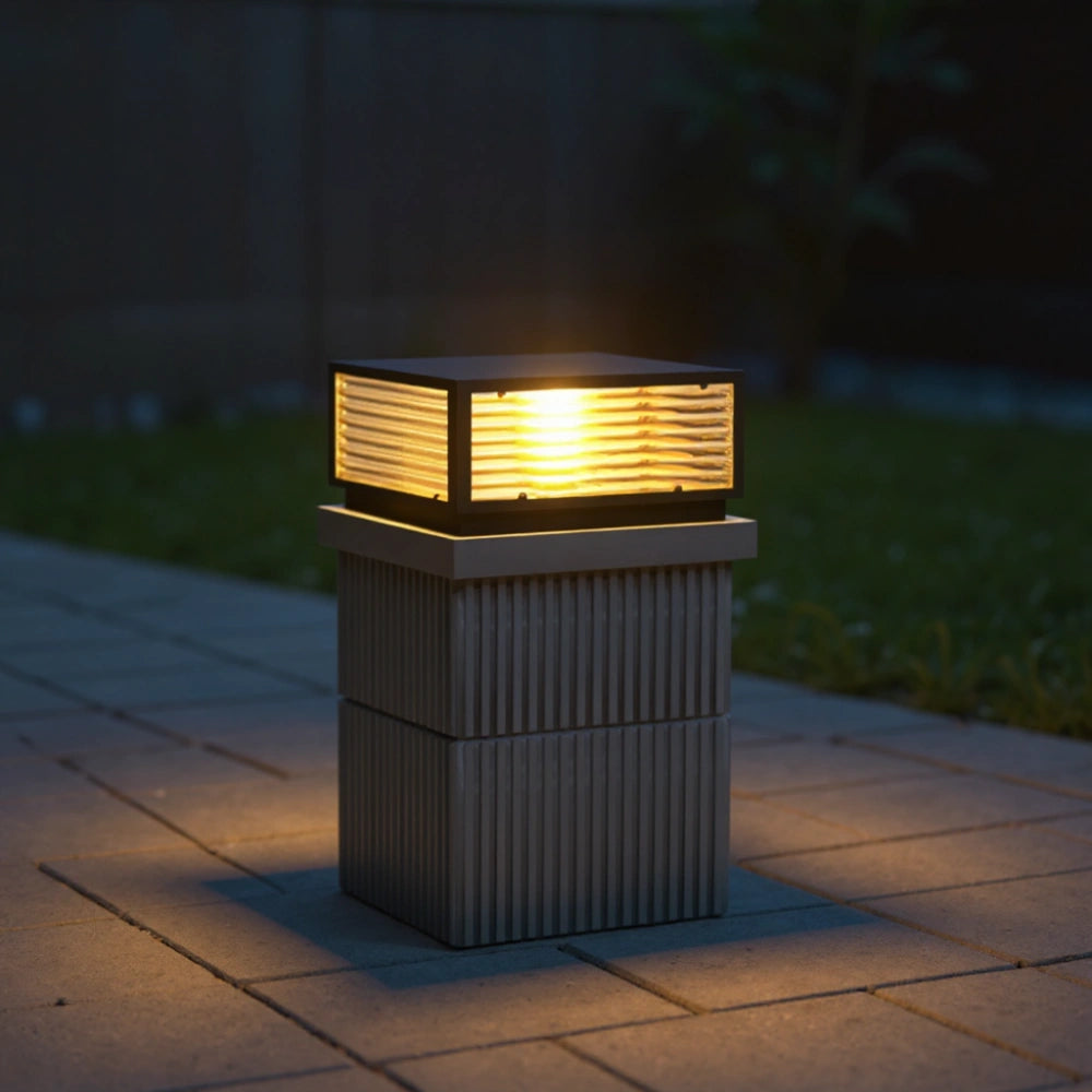 Esta lámpara solar de jardín de estilo minimalista presenta un diseño moderno en cubo a rayas. Fabricada en acero inoxidable resistente a la oxidación y vidrio de alta transparencia, ofrece durabilidad y eficiencia. Ideal para patios y jardines, es completamente impermeable y funciona con energía solar. Disponible en versiones solar y con cable.