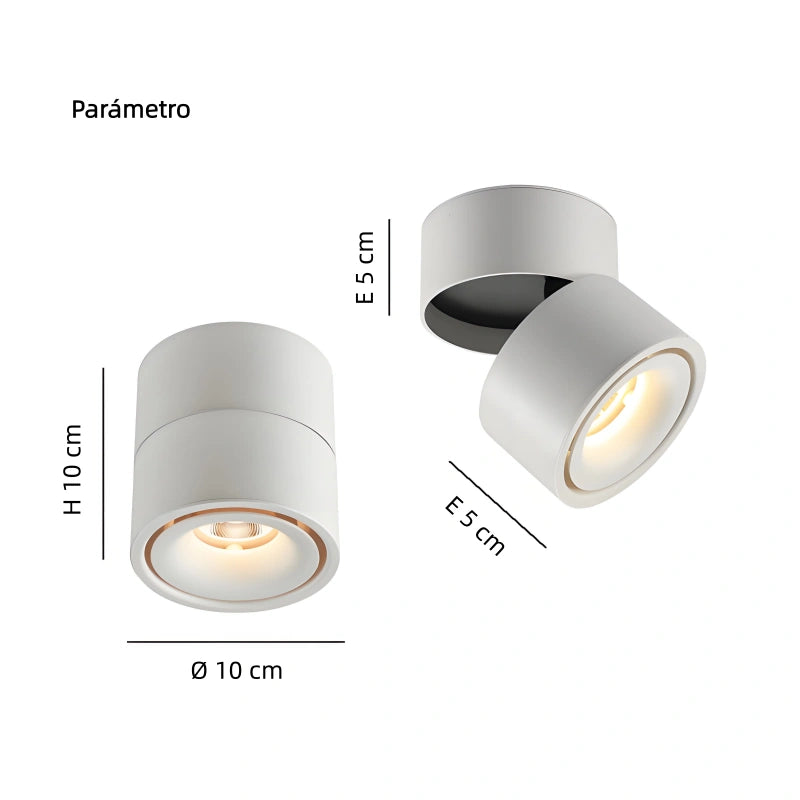 Este foco LED de superficie plegable con diseño cilíndrico minimalista combina estética y funcionalidad. Fabricado en aluminio de alta calidad, resistente al óxido y a la decoloración, cuenta con una lente profesional que proporciona un haz de luz preciso con rotación de 350°. Disponible en negro y blanco, y con tres tonos de luz seleccionables, es ideal para la iluminación decorativa de paredes.