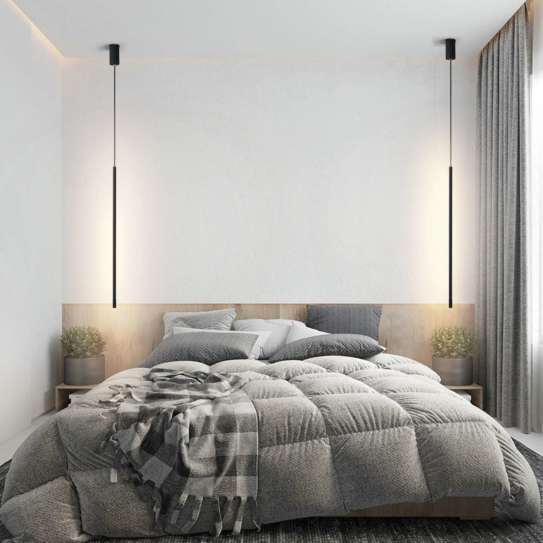 Esta lámpara colgante LED lineal negra moderna para cabecero está fabricada con un cuerpo de aluminio con pintura al horno, sólido y resistente a la deformación. Su acabado negro ofrece una textura elegante, antioxidante, anticorrosiva y duradera. La pantalla de PC translúcida incorpora una fuente de luz LED en su interior, lo que garantiza una alta transmisión de luz y una iluminación suave que no deslumbra. Sin parpadeo visible, protege mejor la vista. Tres tonos de luz regulables permiten cambiar fácilmente entre luz cálida, neutra y fría, adaptándose a las diferentes necesidades de iluminación de su entorno diario. Disponible en varios tamaños para satisfacer los requerimientos de distintos espacios.