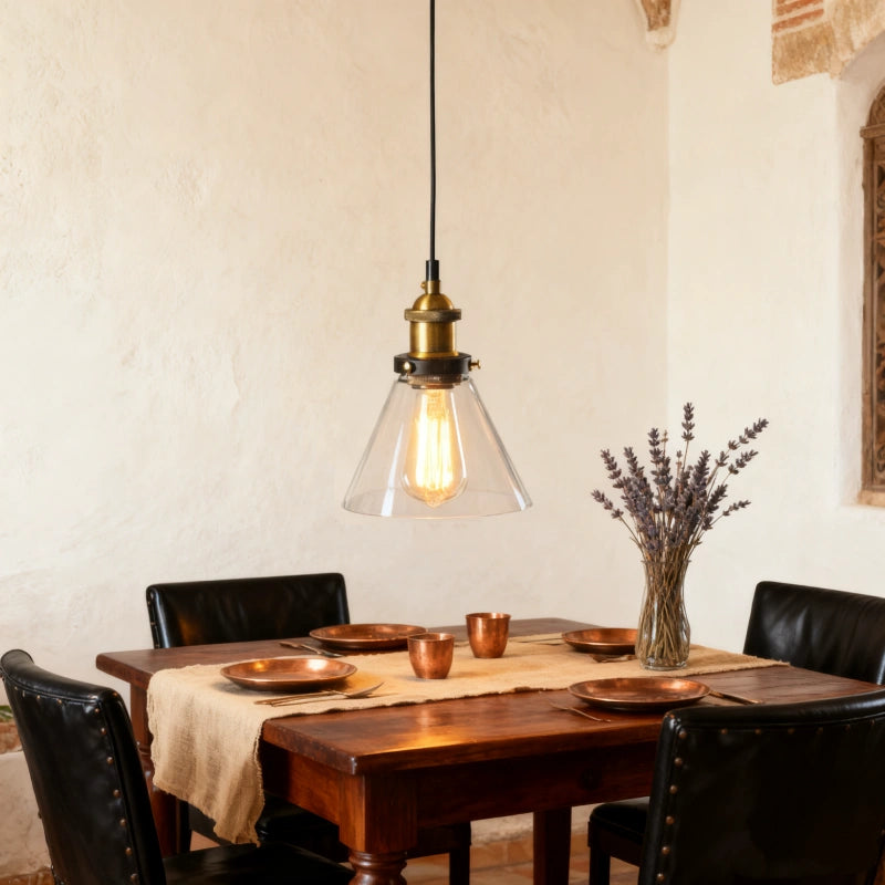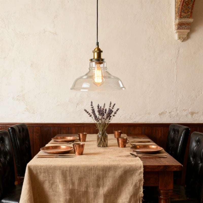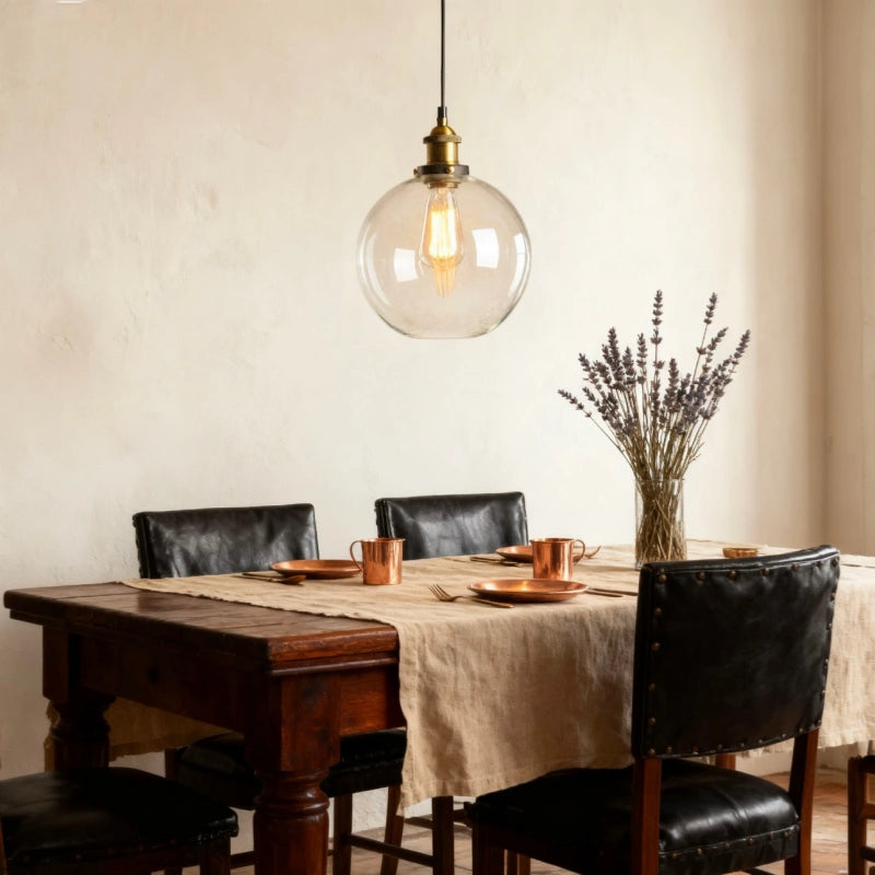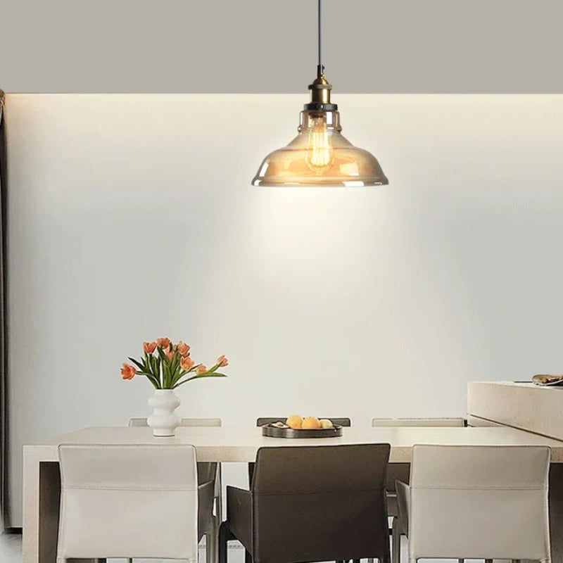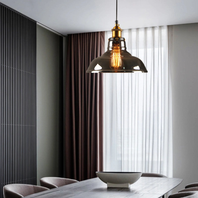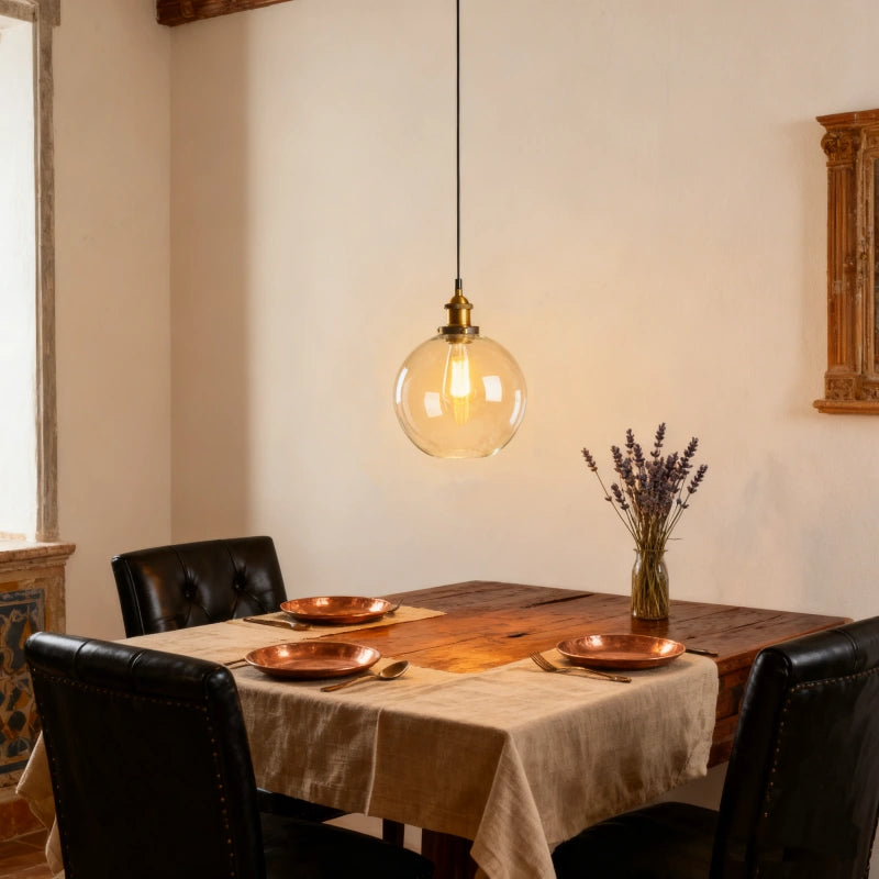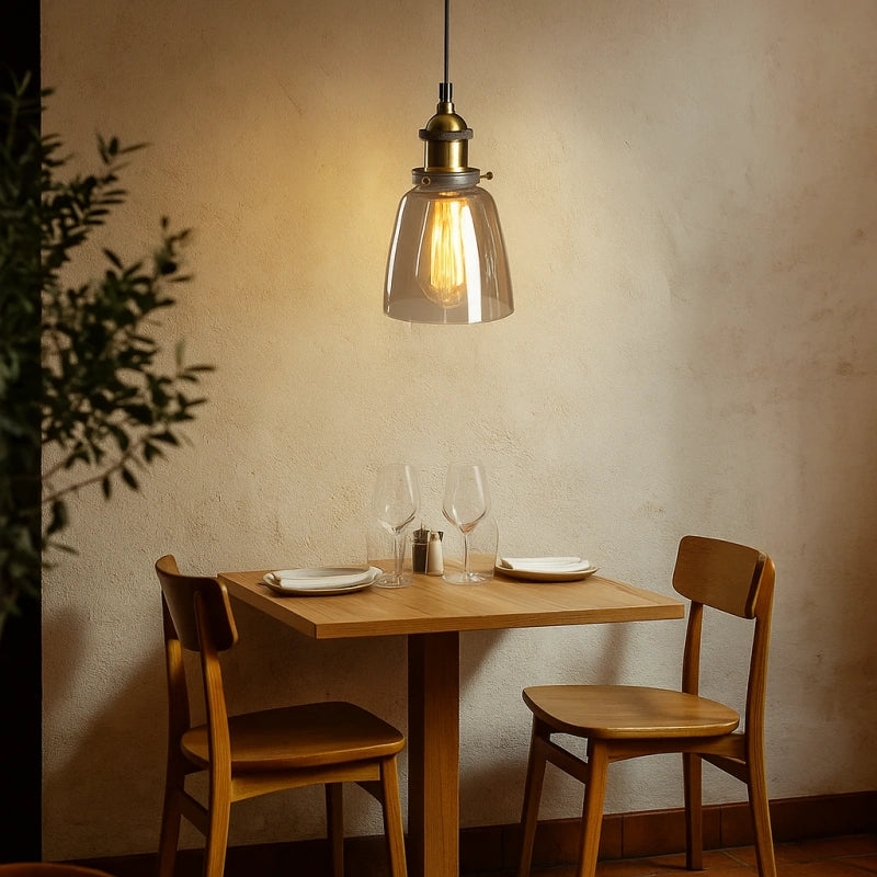 Esta lámpara colgante de vidrio soplado estilo vintage para restaurante añadirá un toque retro a tu comedor. Con su pantalla de vidrio soplado y su delicada artesanía, ofrece una textura refinada, mientras que la pantalla de vidrio de calidad emite una luz suave y cálida. Su base de metal de alta calidad es compatible con bombillas LED E27. Disponible en varios modelos, se adapta perfectamente a las necesidades de tu espacio.