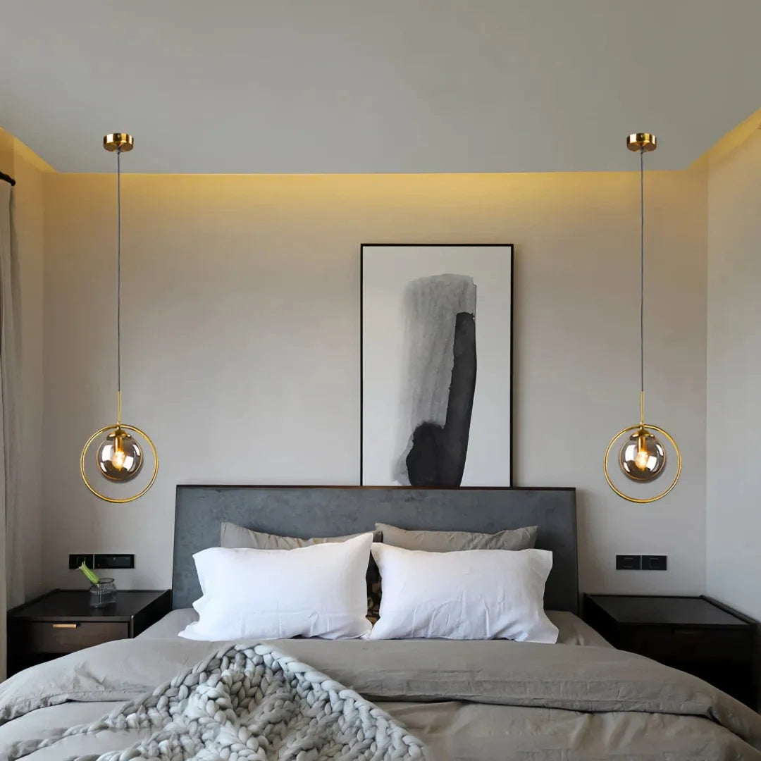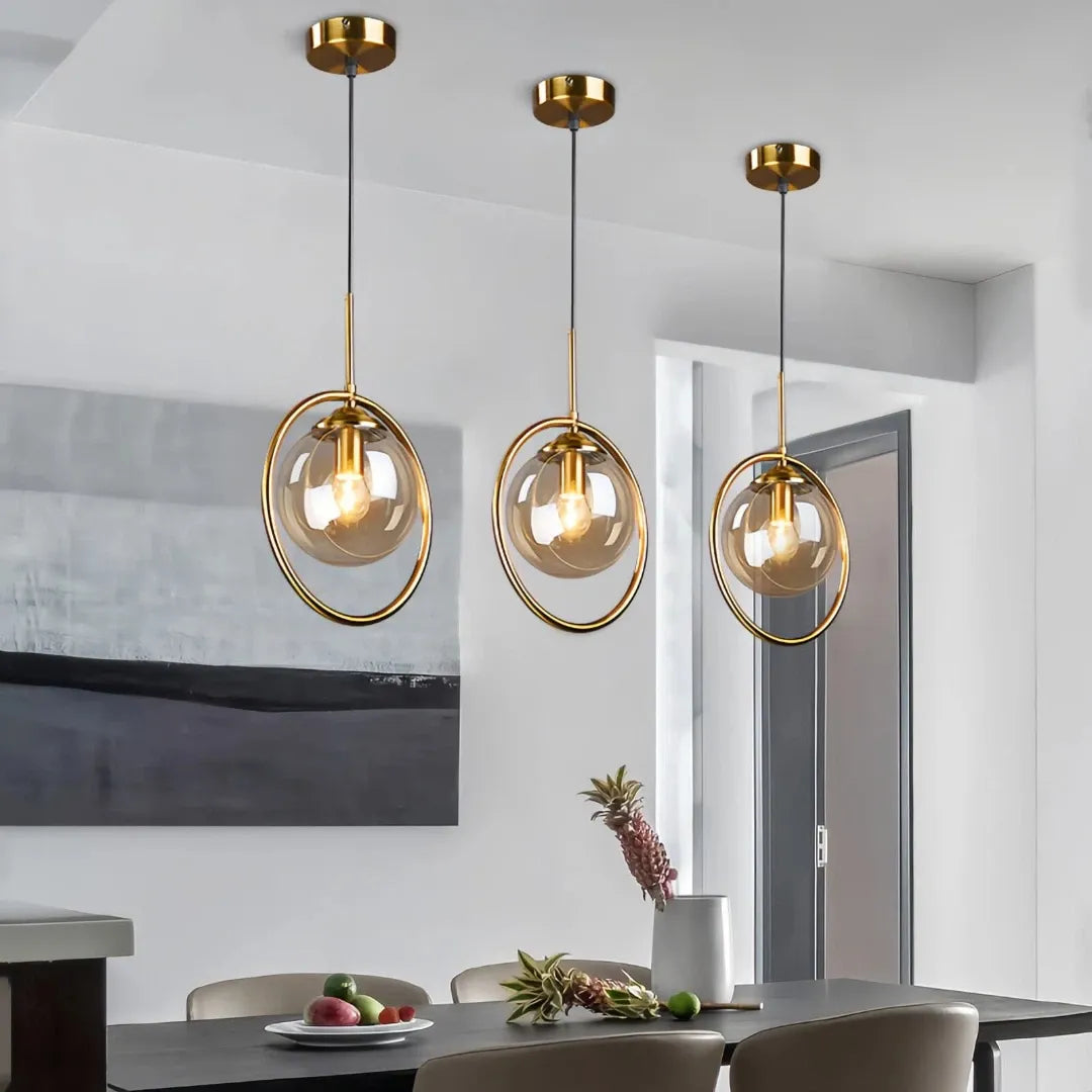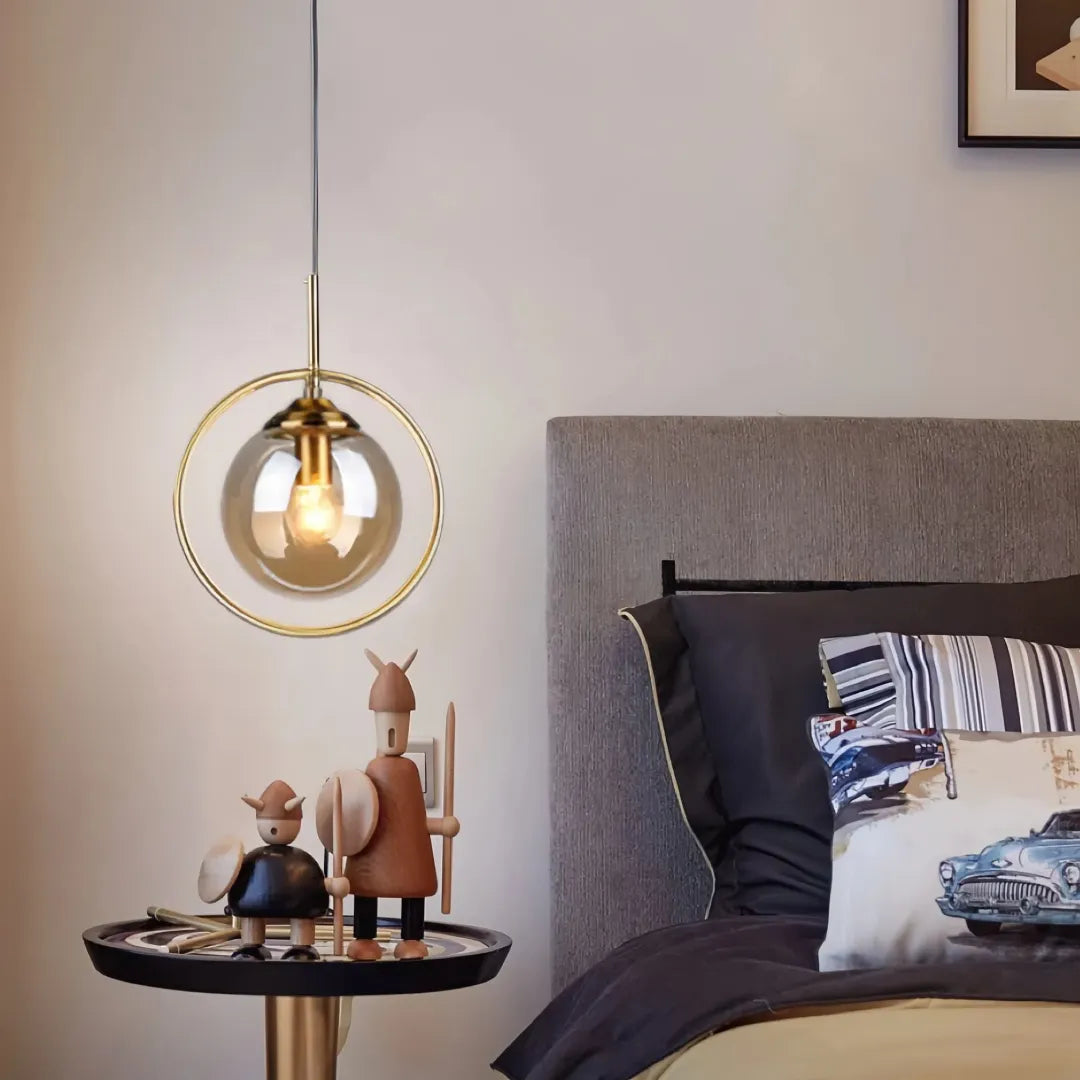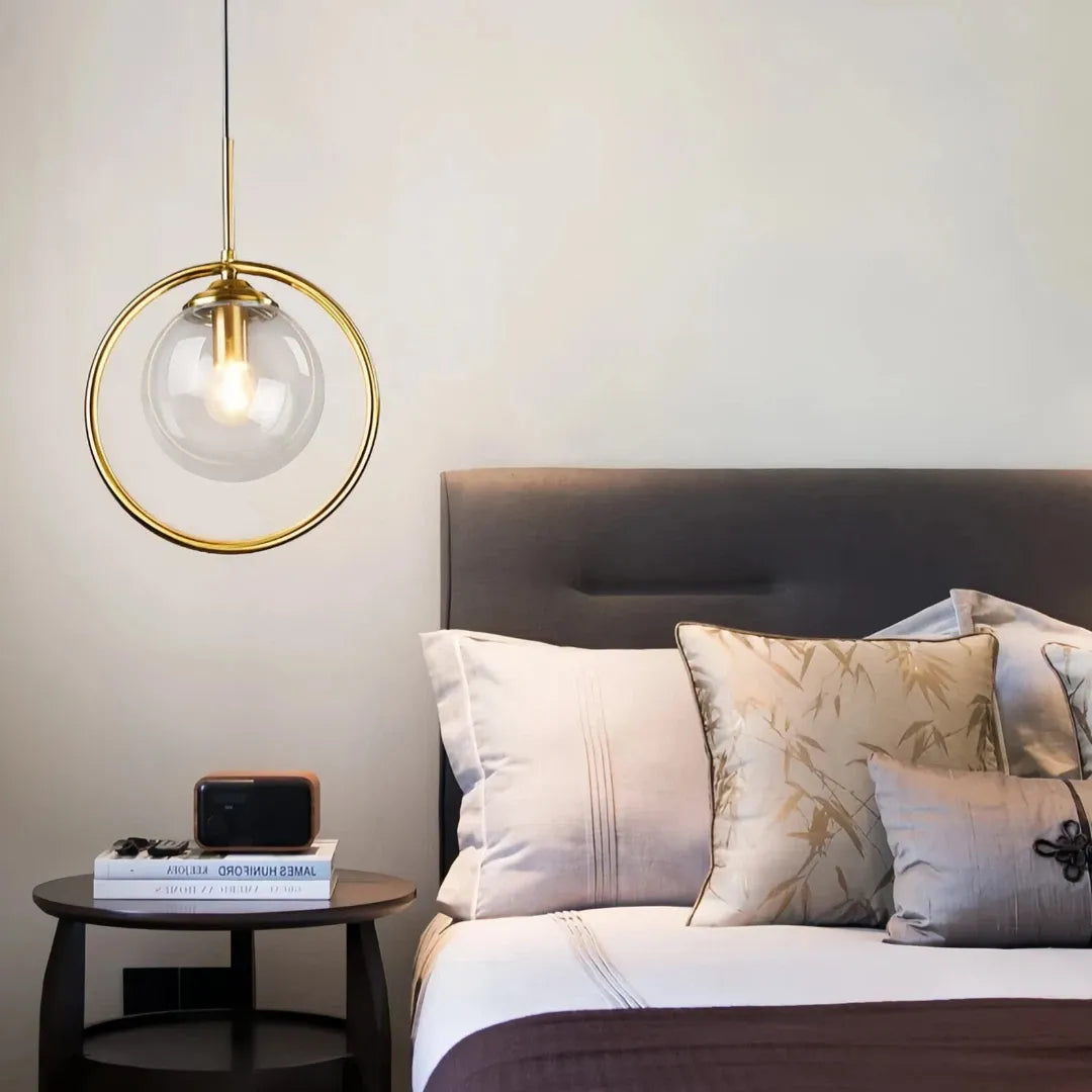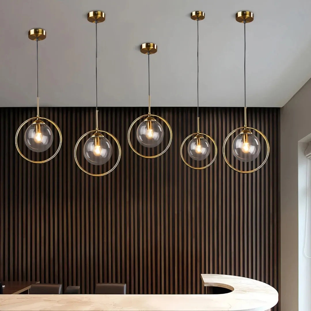 La lampara colgante globo vidrio combina estética y funcionalidad dentro de las lamparas colgantes diseño moderno, destacando por su elegante forma esférica integrada en una estructura circular. Esta lampara colgante esfera vidrio está fabricada con vidrio soplado a mano de alta transparencia, lo que permite una difusión uniforme de la luz y crea una iluminación suave y confortable.