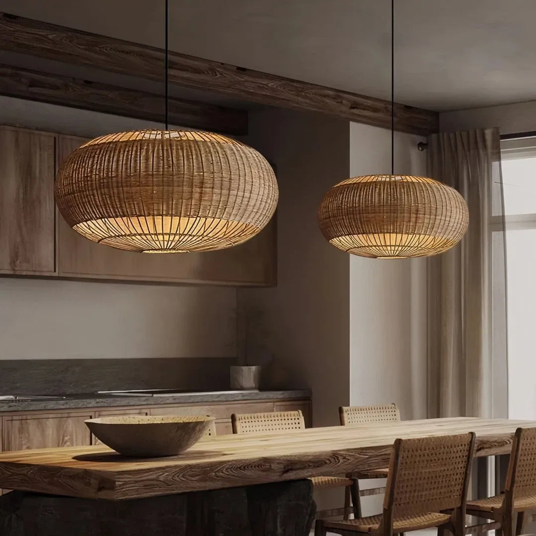 Gracias a su diseño como lampara colgante regulable en altura, se adapta fácilmente a diferentes alturas de techo, ofreciendo una iluminación equilibrada sin comprometer el confort visual. Es perfecta como lámpara colgante de ratán para mesa de comedor o como lámpara colgante para isla de cocina de ratán, aportando funcionalidad y estilo en cualquier espacio.