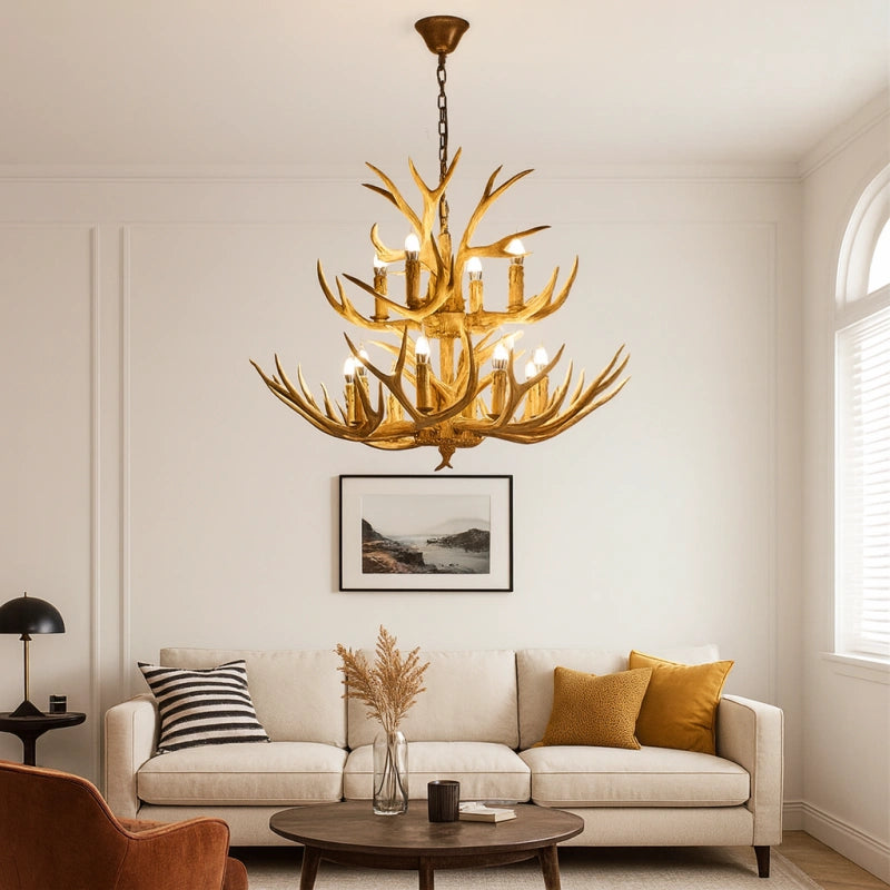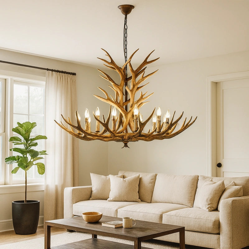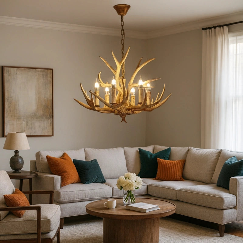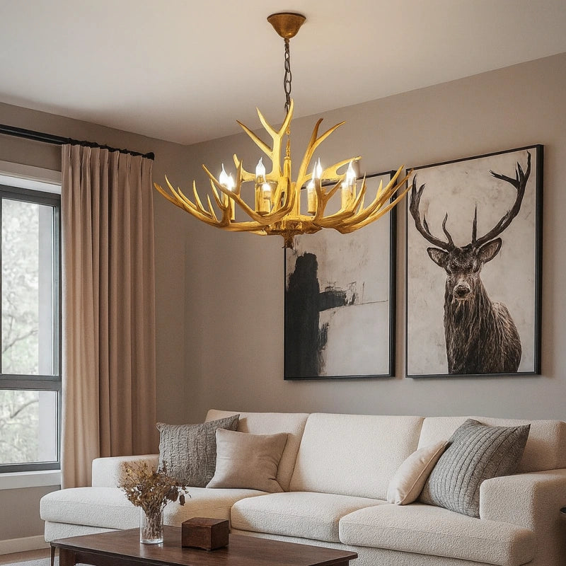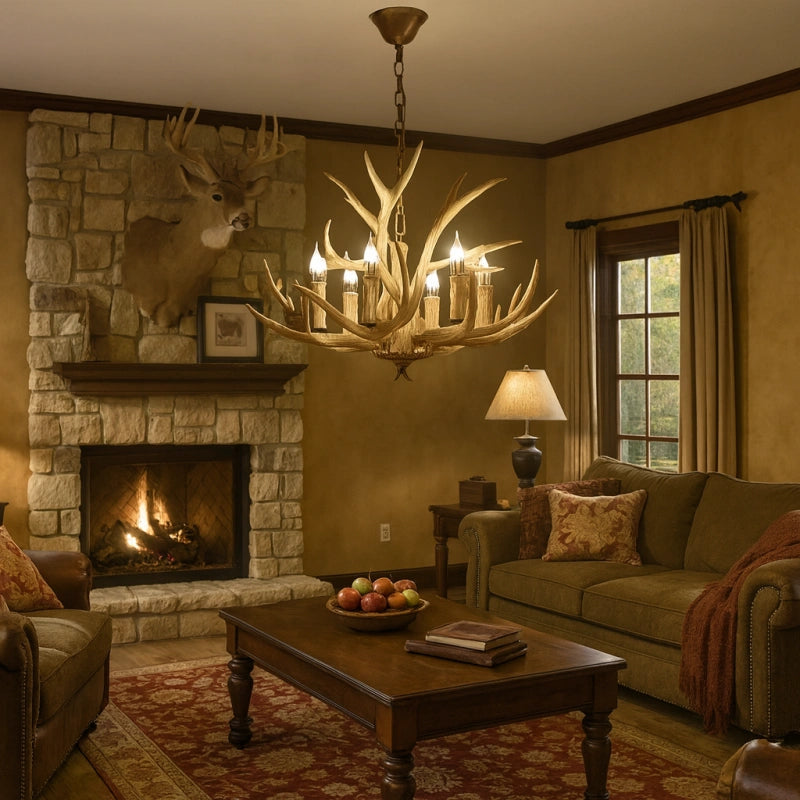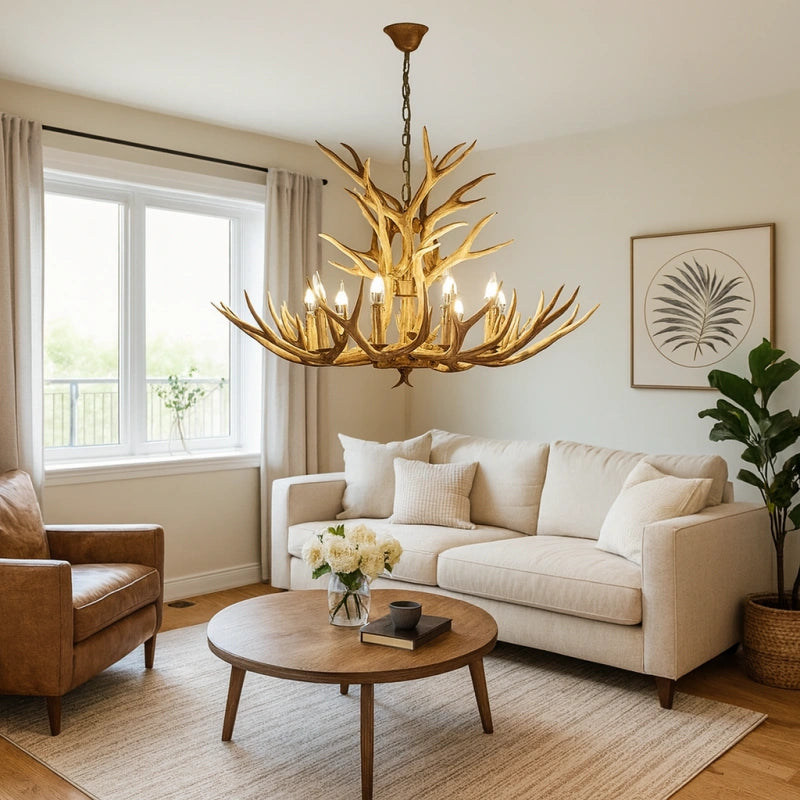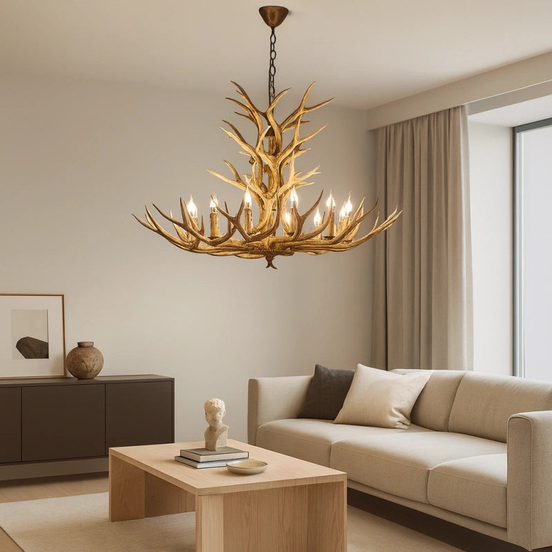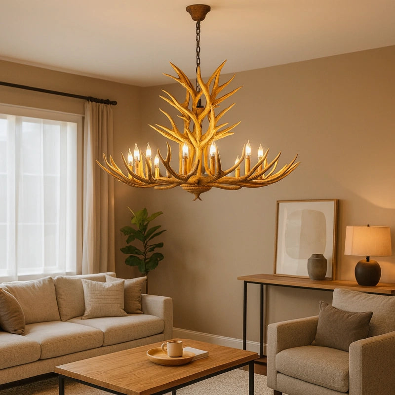 Esta lámpara colgante de estilo rústico con diseño de astas de ciervo está fabricada con un cuerpo de resina de alta calidad, con una textura clara y un acabado robusto y duradero. Utiliza bombillas LED tipo vela de alta reproducción cromática, que ofrecen un espectro de luz cercano al natural, mejorando la calidad y el brillo de la iluminación. Su luz es eficiente, energética y se distribuye de manera uniforme en 360°, sin sombras ni parpadeos. La luz estable y sin parpadeo del LED E14 protege la vista, brindando una experiencia cómoda y saludable para los ojos. Es la opción ideal para decorar y dar estilo a tu salón.