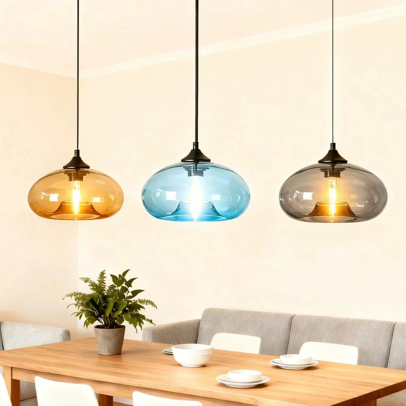 La lampara colgante destaca dentro de las lamparas de vidrio de colores colgantes por su diseño elegante y funcional. Fabricada en vidrio soplado de alta transparencia, esta lámpara colgante de vidrio de colores ofrece una iluminación LED uniforme y suave, ideal para crear ambientes acogedores sin deslumbramientos.