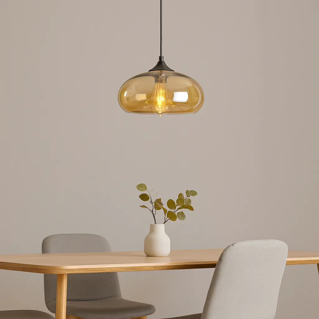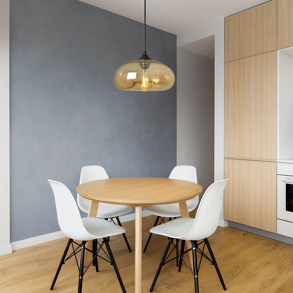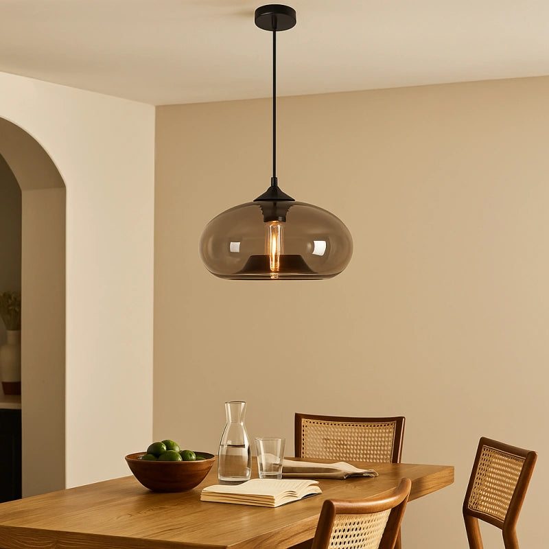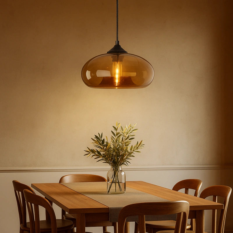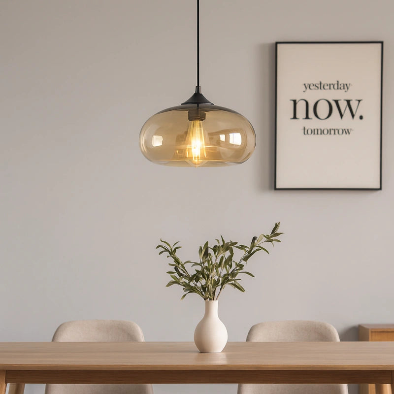Esta lámpara colgante moderna de diseño ovalado añade un toque decorativo único a tu espacio. Su diseño ovalado, fabricado con vidrio de alta calidad, crea una atmósfera cálida y acogedora gracias a su pantalla de vidrio difusa. Con un diseño sencillo y moderno, se adapta perfectamente a diversos estilos de comedor. Ofrecemos varias opciones de colores para combinar fácilmente con tu decoración. Es la opción ideal para realzar la personalidad y el ambiente de tu comedor.