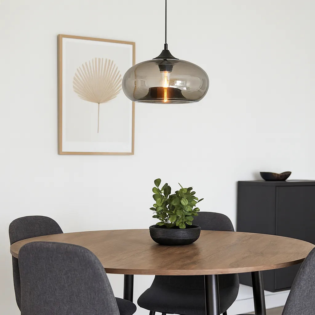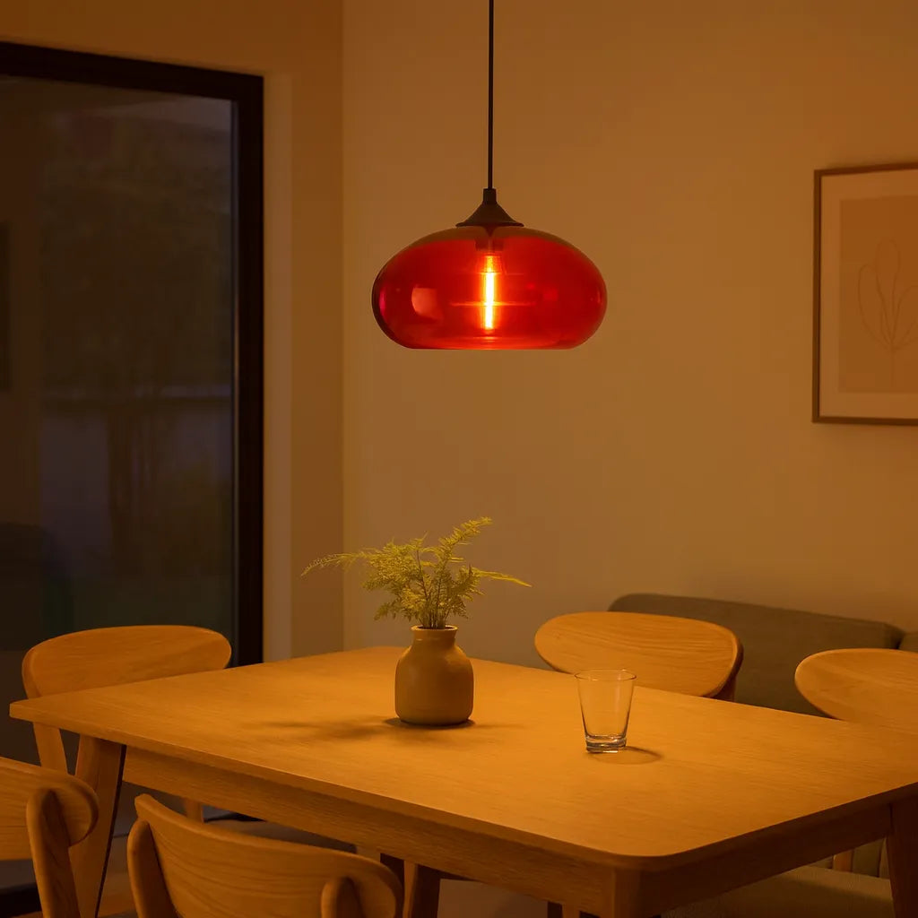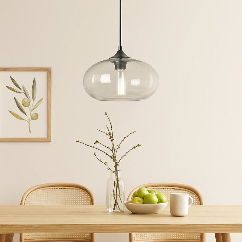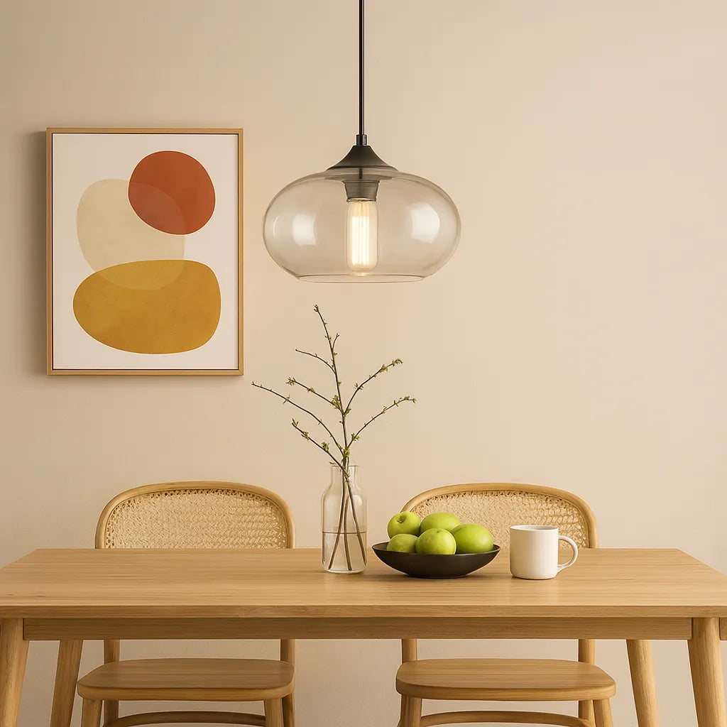 Esta lámpara colgante moderna de diseño ovalado añade un toque decorativo único a tu espacio. Su diseño ovalado, fabricado con vidrio de alta calidad, crea una atmósfera cálida y acogedora gracias a su pantalla de vidrio difusa. Con un diseño sencillo y moderno, se adapta perfectamente a diversos estilos de comedor. Ofrecemos varias opciones de colores para combinar fácilmente con tu decoración. Es la opción ideal para realzar la personalidad y el ambiente de tu comedor.