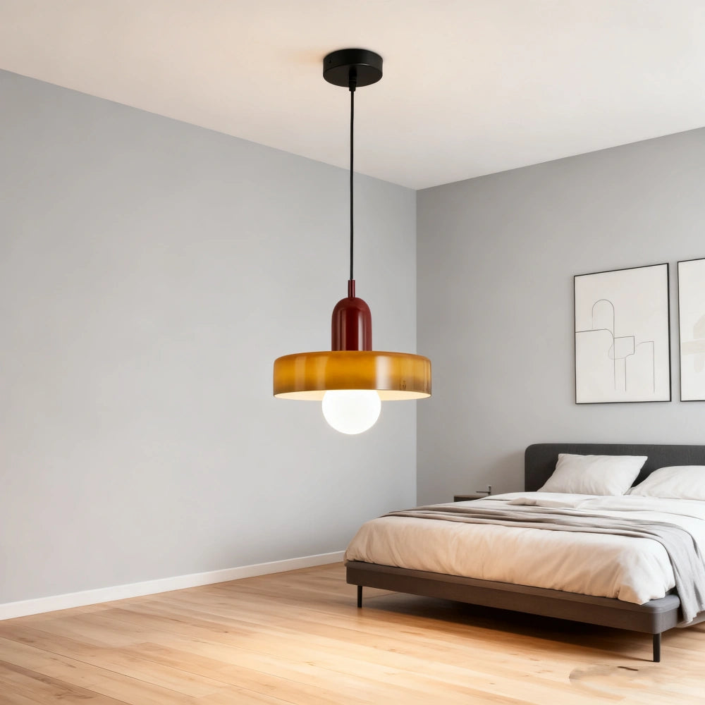 Esta lámpara colgante moderna de vidrio bicolor para mesita de noche, con una pantalla de vidrio soplado hecha a mano de diseño exclusivo, ofrece una iluminación cálida y cómoda con su fuente de luz G9 seleccionada, perfecta para tu cabecera. Con función de cambio de color en tres tonalidades, podrás ajustar la luz según tus preferencias, adaptándose a diferentes ambientes. Disponible en varias opciones de colores, añade un toque único a tu mesita de noche. Su diseño moderno y discreto se integra perfectamente con una variedad de estilos decorativos, siendo la opción ideal para quienes buscan la combinación perfecta entre estética y funcionalidad.