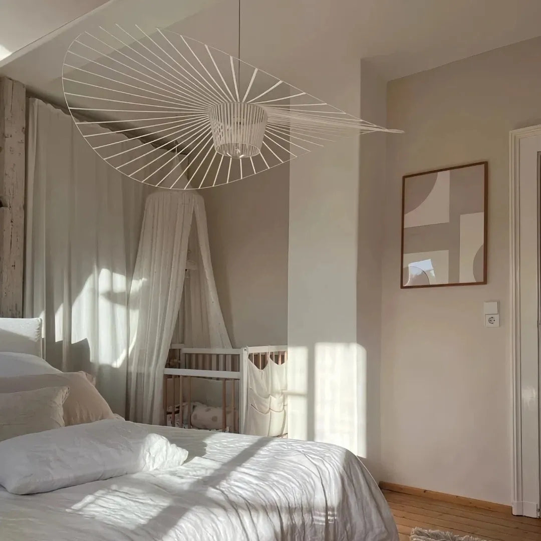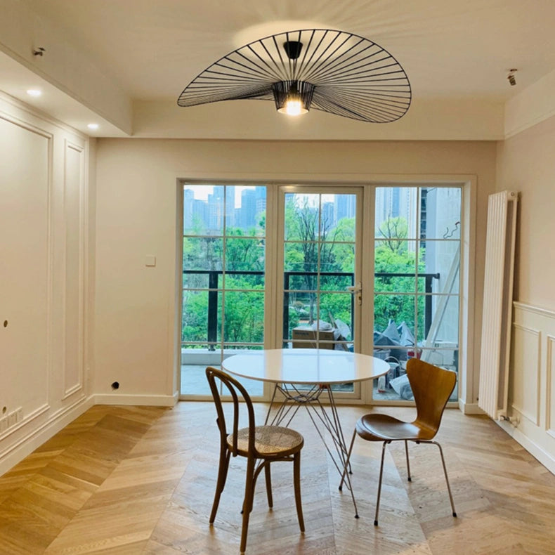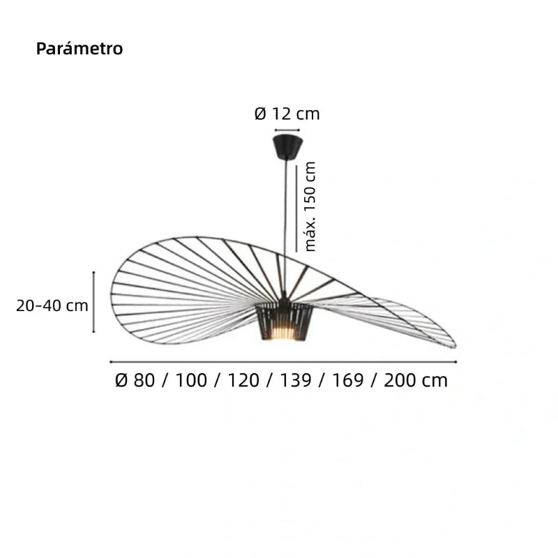 La lampara colgante sombrero es una sofisticada lampara colgante moderna de diseño moderno que destaca por su original estructura en forma de sombrero, aportando carácter y elegancia a cualquier espacio. Proporciona luz suave con tecnología LED de alto índice de reproducción cromática, garantizando una iluminación natural, confortable y que protege la vista. Ideal como una de las mejores lamparas colgantes para salon, también es perfecta para dormitorio y comedor.