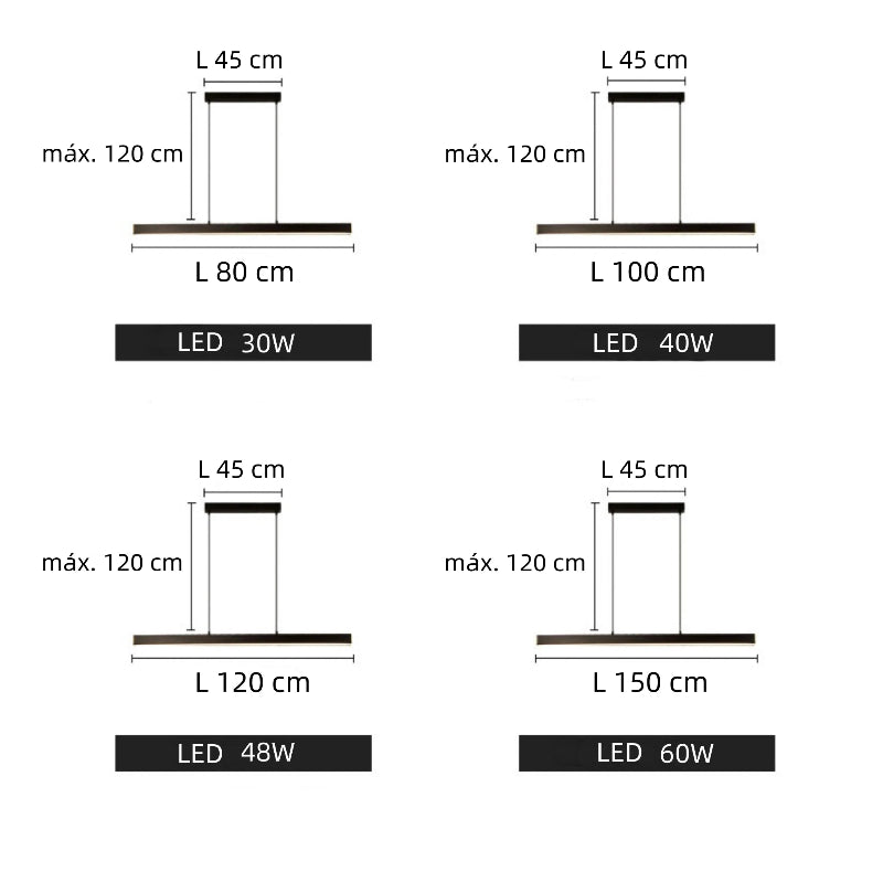 Esta lámpara lineal colgante de estilo moderno ofrece una solución de iluminación elegante y funcional. Fabricada en aluminio pintado, es resistente al óxido y duradera, combinada con acrílico de alta transmisión luminosa. Integra iluminación LED eficiente, es regulable y permite ajustar la altura, adaptándose perfectamente a comedor y cocina. Cuenta con certificación CE para mayor seguridad y calidad.