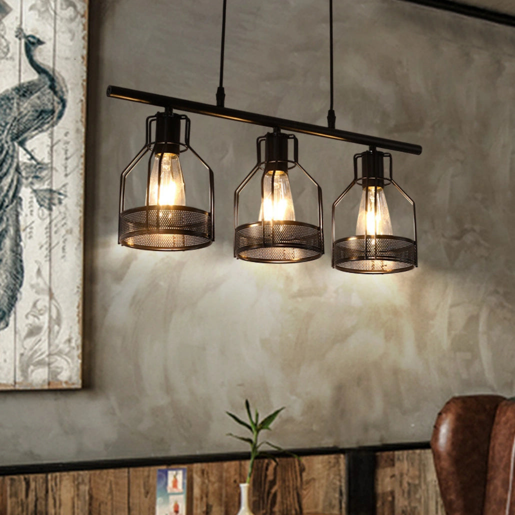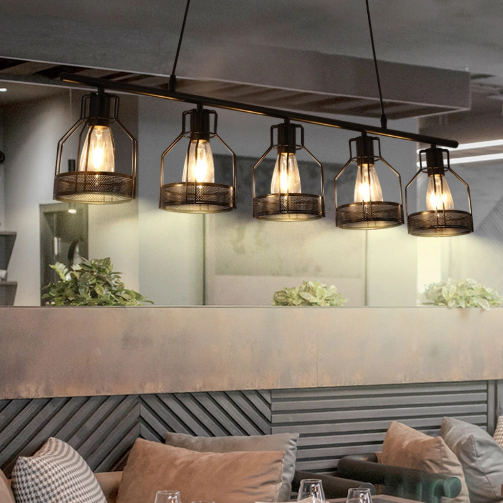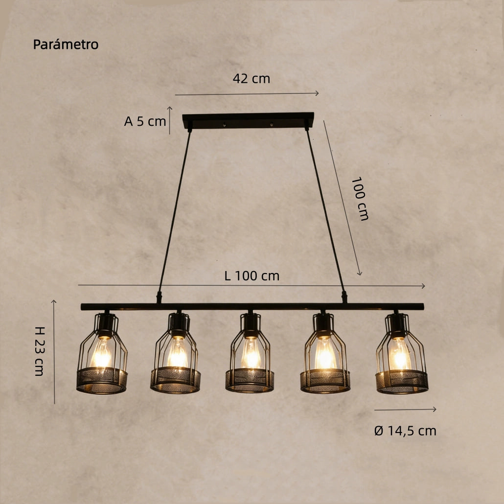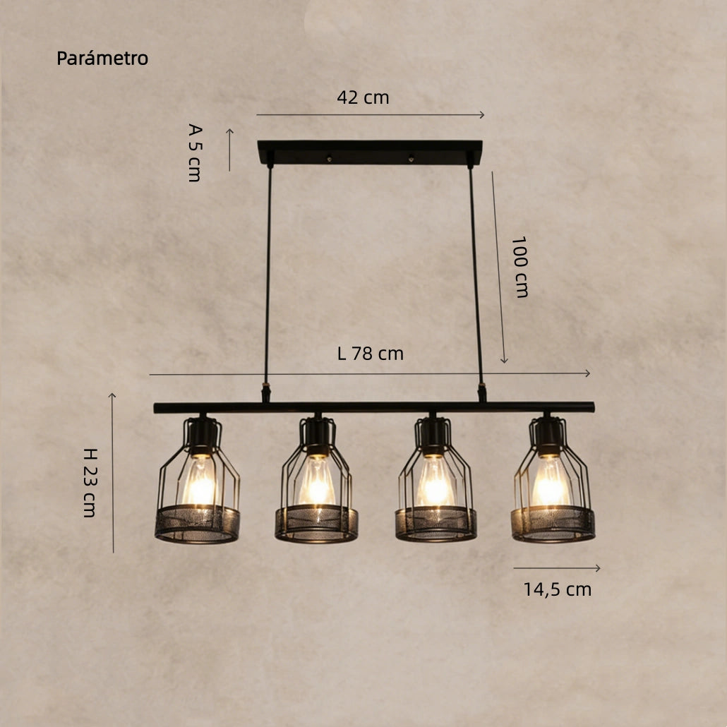 La lámpara colgante múltiple de metal negro con diseño tipo linterna es una pieza decorativa pensada para mesas de comedor con estilo industrial y vintage. Esta luz colgante múltiple pertenece a la categoría Lámparas Colgantes para Mesa Comedor y destaca por su estructura metálica resistente y su acabado sobrio. Ofrece una iluminación cálida y equilibrada gracias a la disposición de varios puntos de luz, creando un ambiente acogedor y con carácter. Su altura regulable permite adaptarla fácilmente a la mesa, mientras que el color negro refuerza su estética industrial y su durabilidad en el uso diario.
