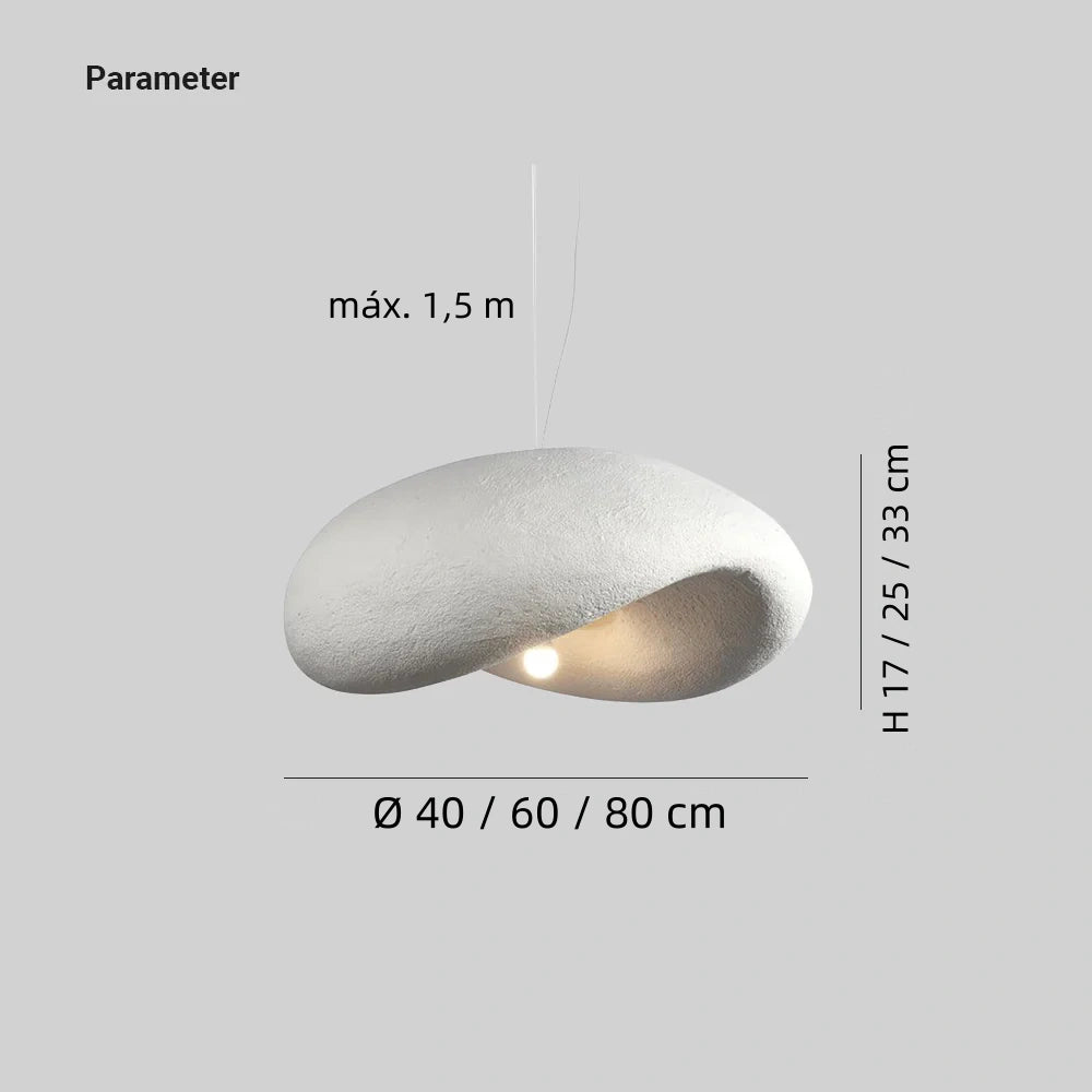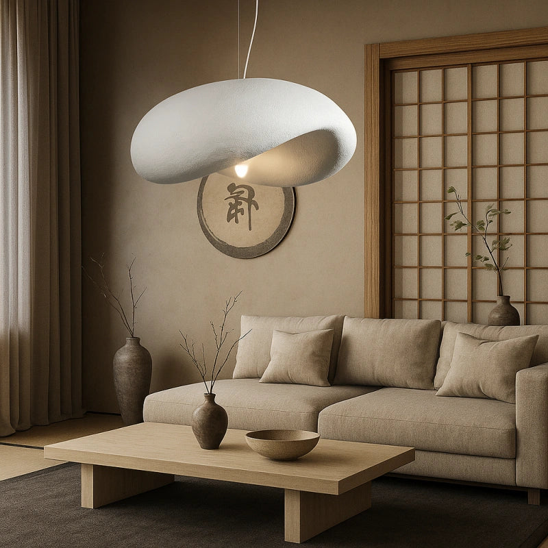 Esta lámpara colgante de estilo Wabi-Sabi está diseñada para aportar una atmósfera minimalista y elegante a tu salón. Fabricada con un cuerpo de poliestireno de alta densidad y utilizando un proceso artesanal de moldeado, ofrece una estética fluida y retro. Equipado con un casquillo E27 de alta calidad, garantiza un suministro eléctrico estable y seguro. Perfecta para iluminar tu salón.