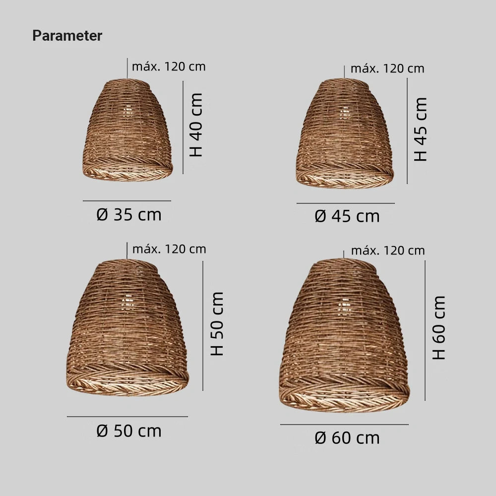 Este lampara de rattan colgante artesanal combina diseño natural y funcionalidad. Fabricada en rattan tejido a mano, ofrece una textura delicada y una difusión de luz uniforme, suave y sin deslumbramientos. Es regulable en altura y cuenta con certificación CE, ideal para salón y comedor.