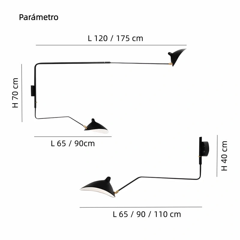 Este aplique de pared lectura de estilo moderno destaca por su diseño ajustable que permite orientar la luz con precisión. Fabricado en hierro con acabado de pintura premium y pantalla rotativa antioxidante, ofrece varias opciones de tamaño y es ideal para dormitorios y salones.