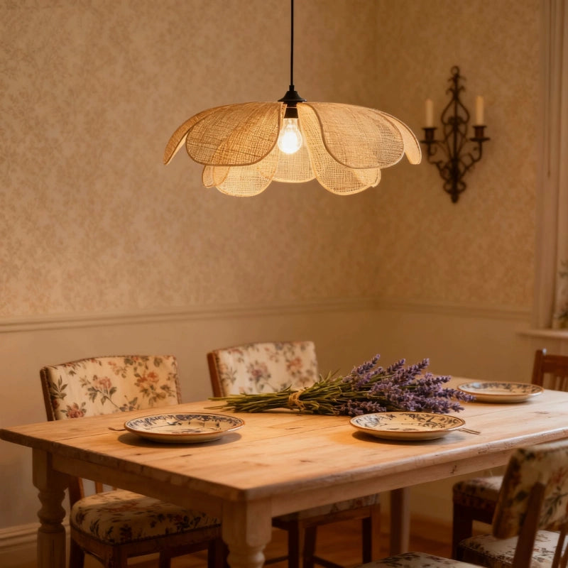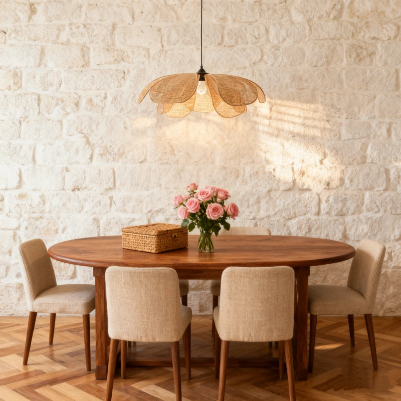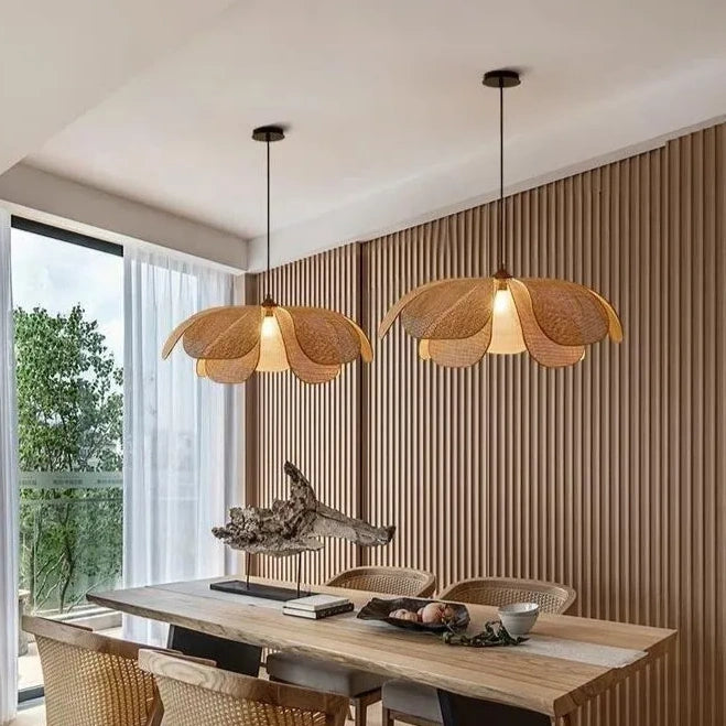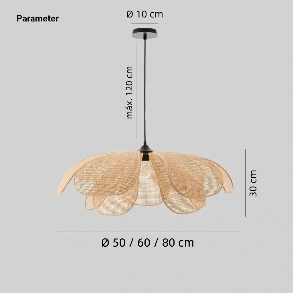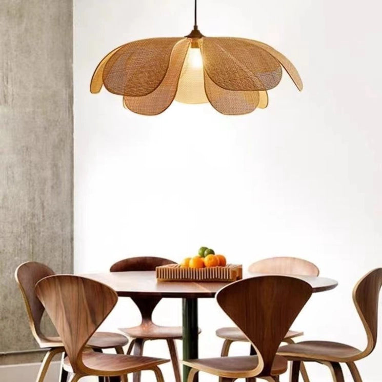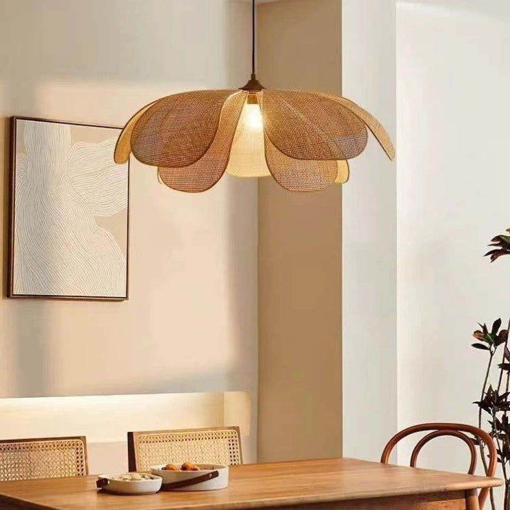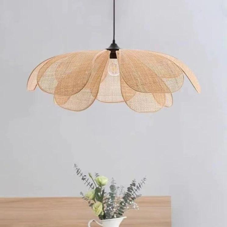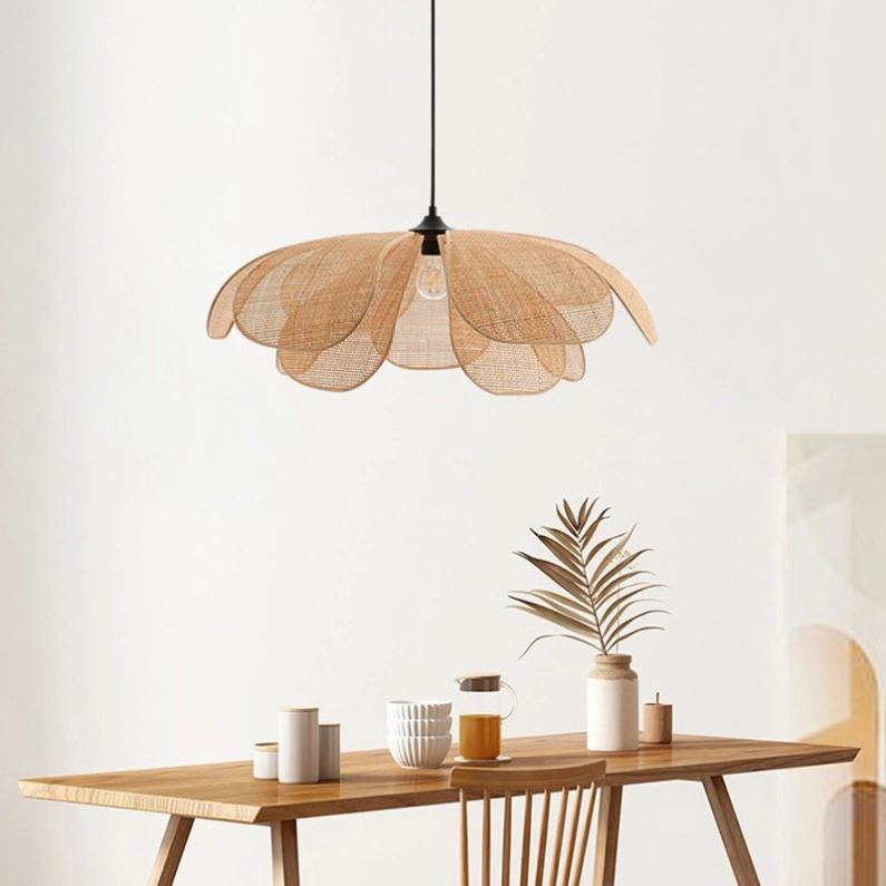 Esta Lámpara Colgante Japonesa de Pétalos Tejidos fusiona el elegante estilo japonés con un diseño delicado de pétalos, aportando calidez y un ambiente único a tu espacio. Hecha a mano con la tradicional técnica de tejido de vides, resalta por su belleza natural. Con vides de alta calidad, garantiza durabilidad y proporciona una iluminación perfecta, iluminando cada rincón y ofreciendo una experiencia visual cómoda y acogedora.
