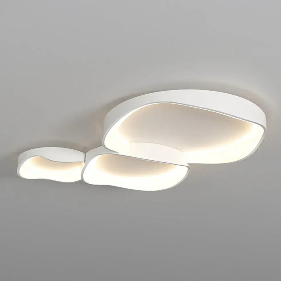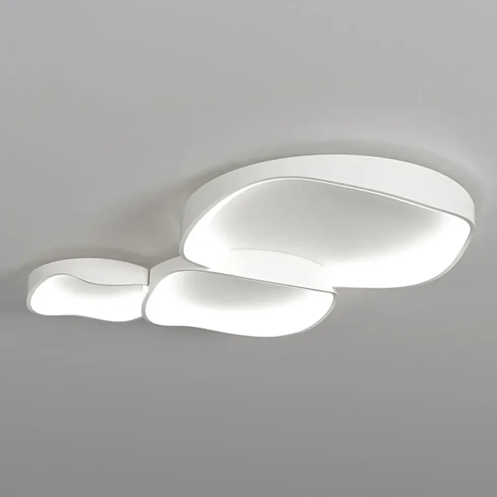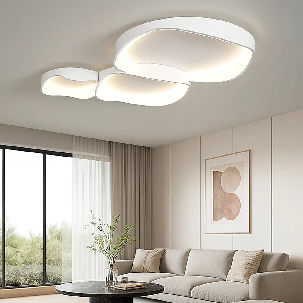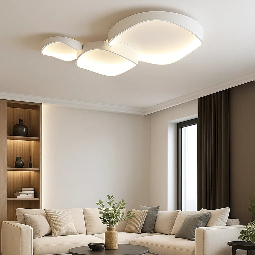 La lampara techo diseño moderno destaca por su estética minimalista y elegante, compuesta por formas irregulares con suaves curvas que evocan nubes flotantes. Su acabado en blanco puro aporta luminosidad y armonía visual, mientras que la luz se difunde de manera uniforme desde el interior, creando un ambiente cálido y acogedor. Esta lámpara de techo moderna añade un toque artístico y contemporáneo, ideal como lámpara de techo para salón o espacios de descanso.