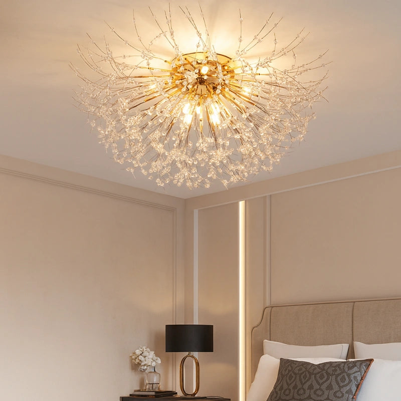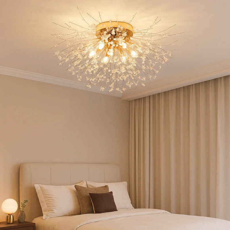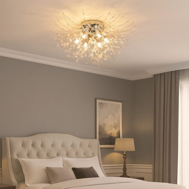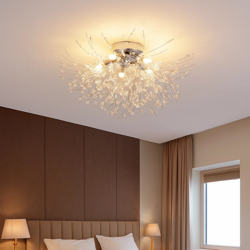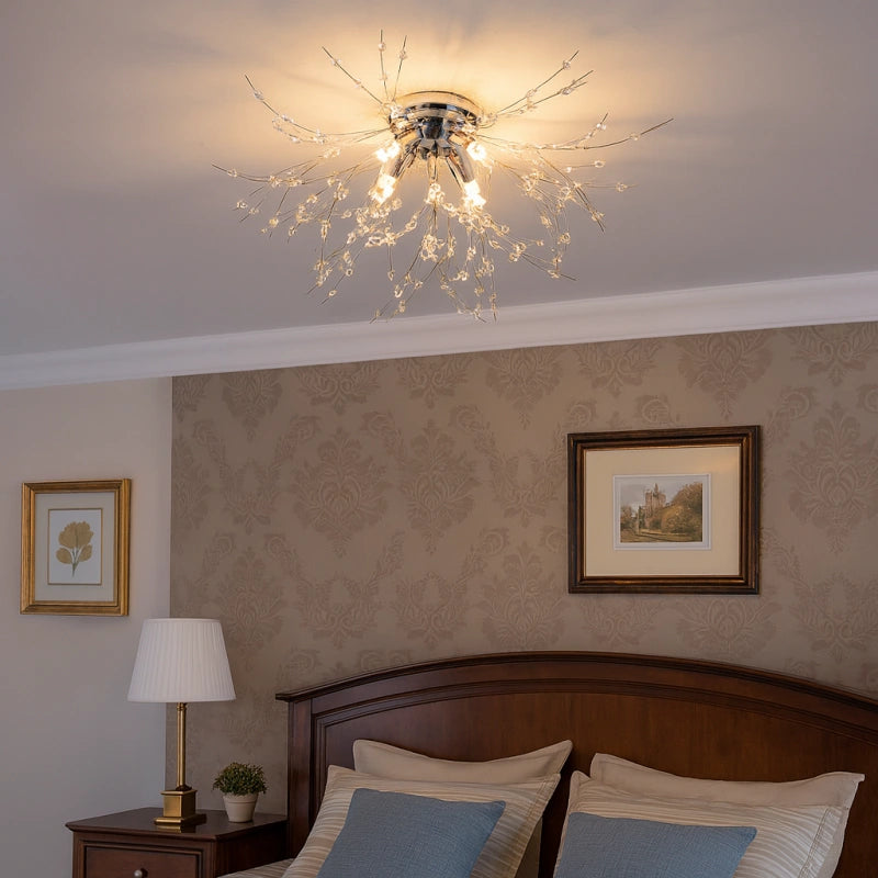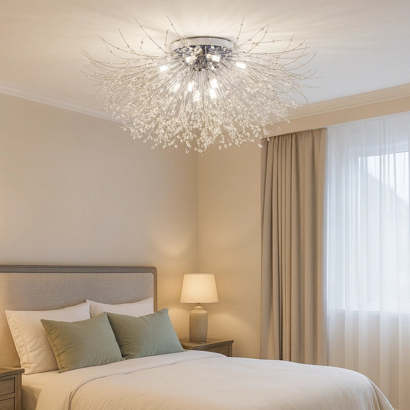 La lamparas de techo sputnik combina estructura geométrica y elegancia en cristal, convirtiéndose en una pieza protagonista dentro de las lamparas de techo de estilo actual. Este modelo forma parte de las lámparas de techo de cristal modernas, ideal como lámpara de techo para dormitorio, comedor o salón. Incorpora iluminación LED con tres tonos de luz regulables, que permiten adaptar el ambiente según la necesidad. Su cuerpo de hierro con acabado lacado ofrece brillo uniforme, resistencia al óxido y a la corrosión. Equipada con bombillas G9 de alta eficiencia, proporciona luz suave, ahorro energético y confort visual. Producto con certificación CE.
