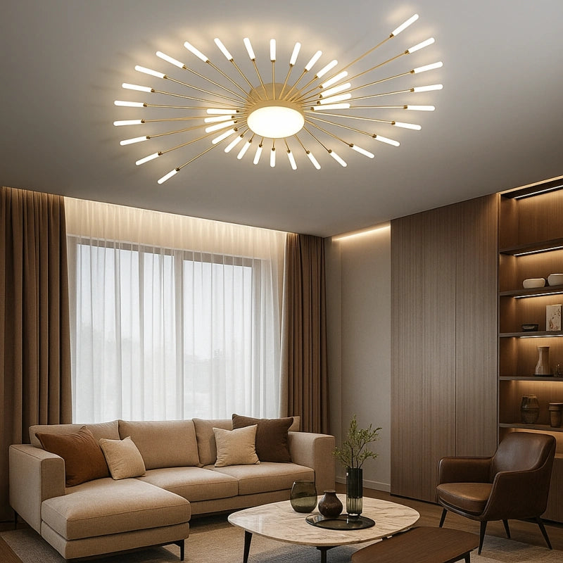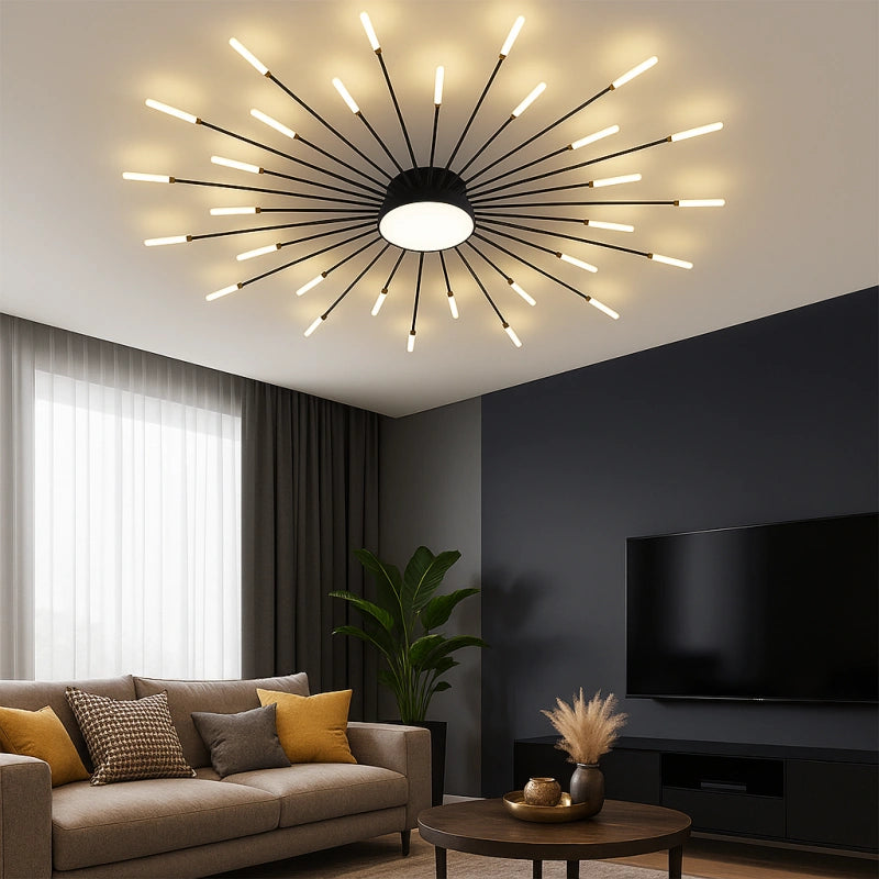 Este lamparas de techo sputnik combina diseño moderno y funcionalidad para transformar cualquier espacio. Esta lámpara de techo moderna incorpora fuente LED de alto brillo y alto índice de reproducción cromática, sin parpadeo visible, cuidando la vista y ofreciendo una iluminación clara y confortable.