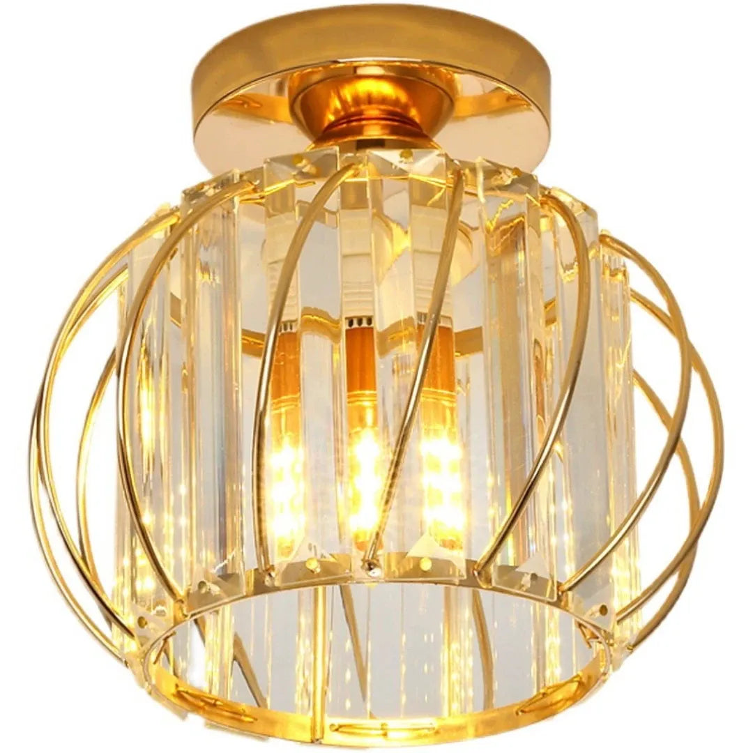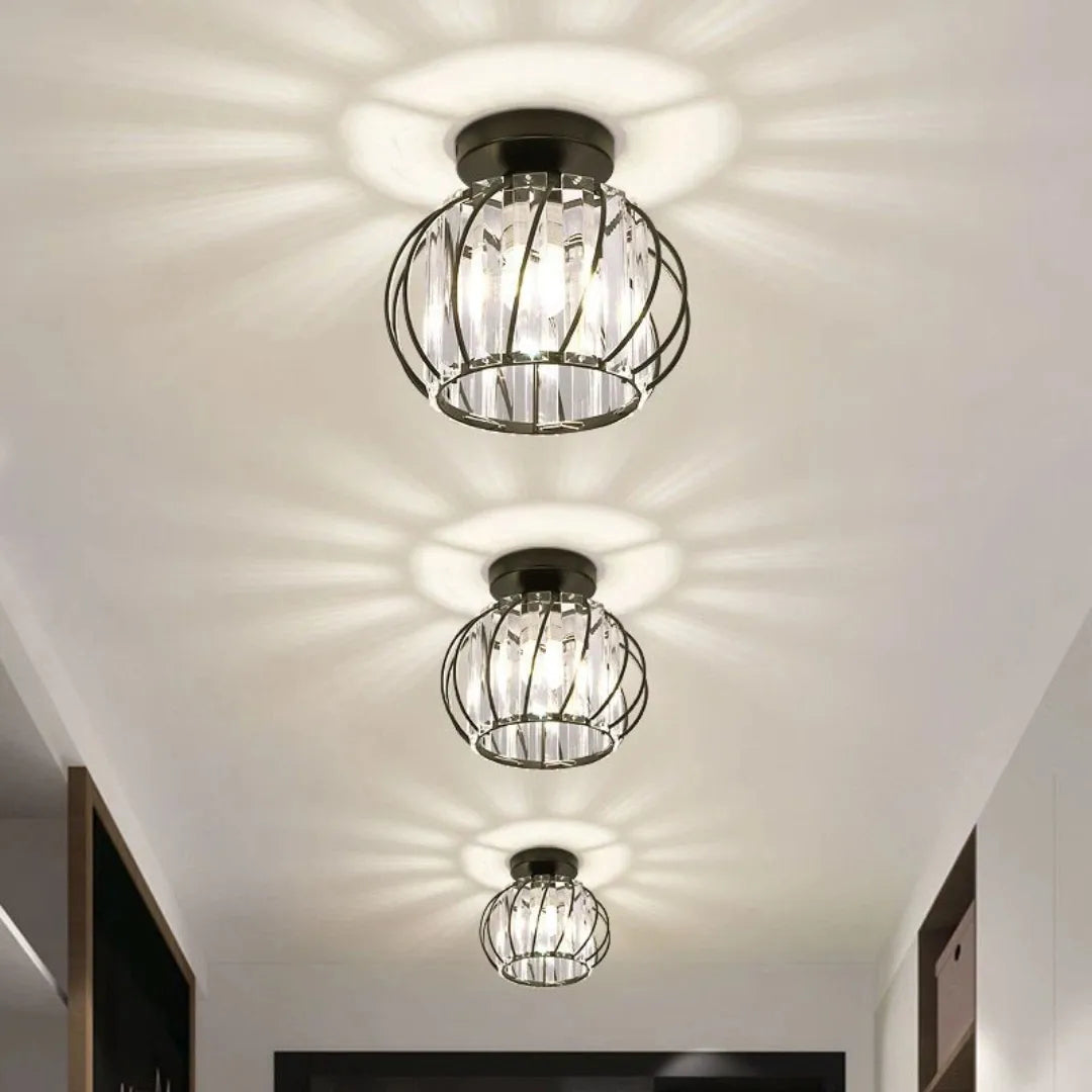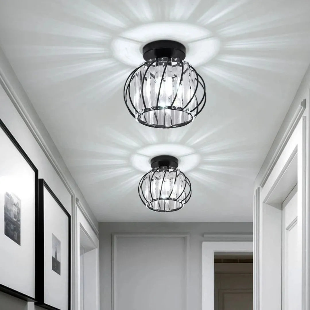 La lámpara de techo de cristal incorpora detalles de cristal brillante que reflejan la luz, generando un efecto luminoso elegante y sofisticado. Su base metálica de alta calidad es resistente, anticorrosiva y segura, con gran capacidad de carga. Además, cuenta con casquillo E27 que facilita el reemplazo de la bombilla. Con certificación CE, es una opción fiable dentro de las lámparas de techo para pasillos modernas, perfecta para pasillos y recibidores.