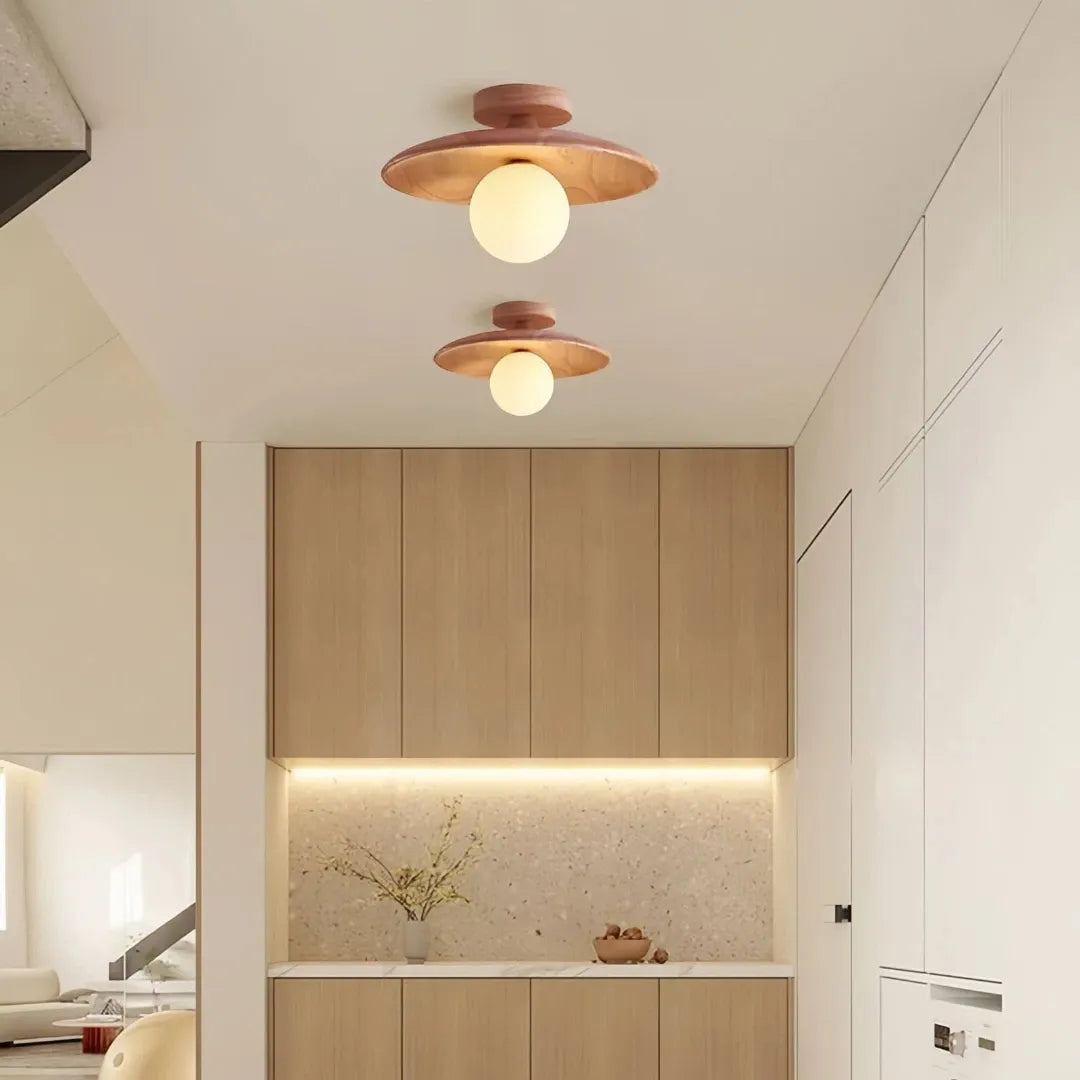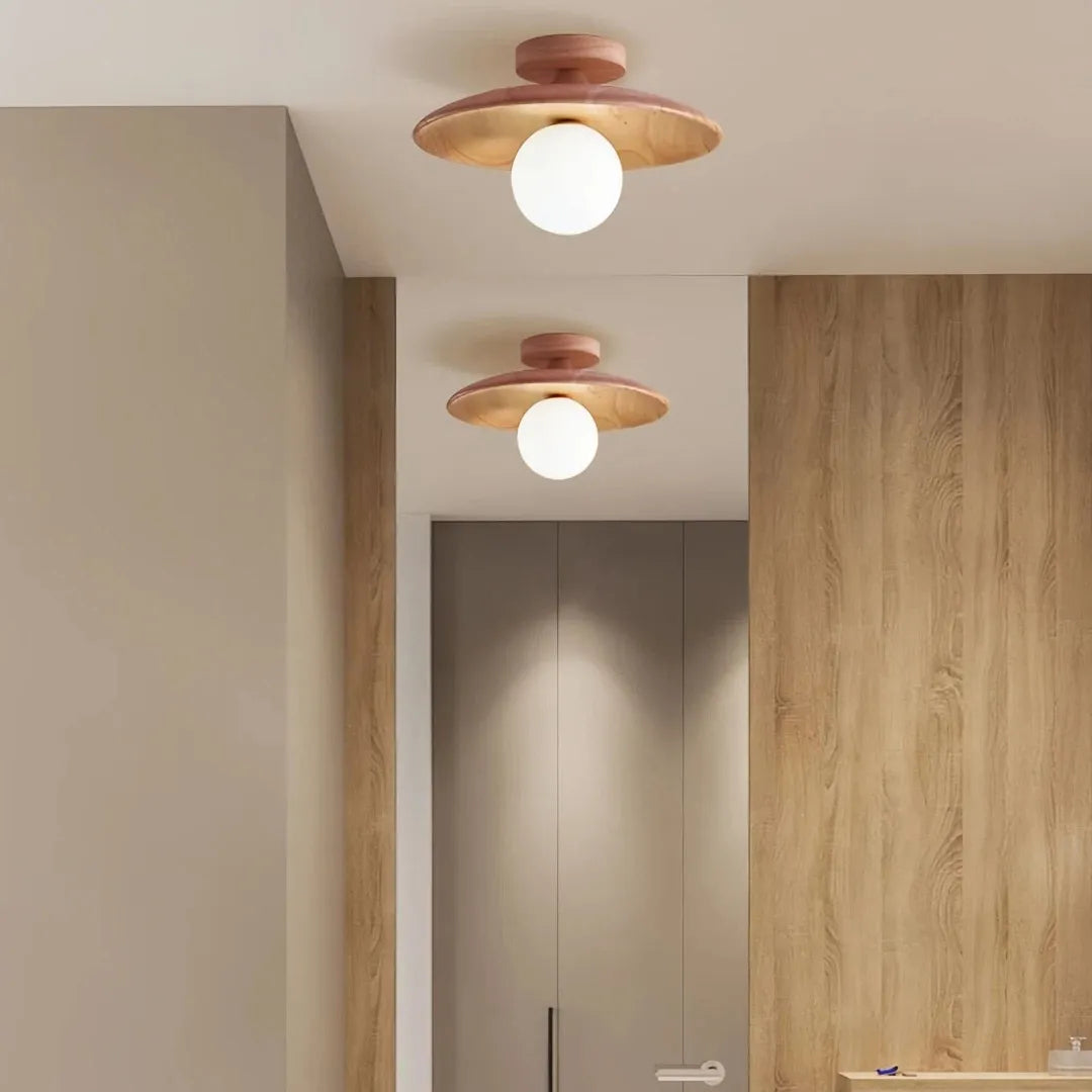 lampara de techo para pasillo de estilo Nórdico, diseñada para aportar calidez y funcionalidad en espacios como pasillos, entradas y recibidores. Esta pieza destaca por su diseño en madera natural, combinando estética minimalista y elegancia atemporal. Perfecta dentro de la categoría de lamparas de techo nordicas y lamparas de techo madera, es una excelente opción como lámpara de techo redonda para entrada y pasillo.