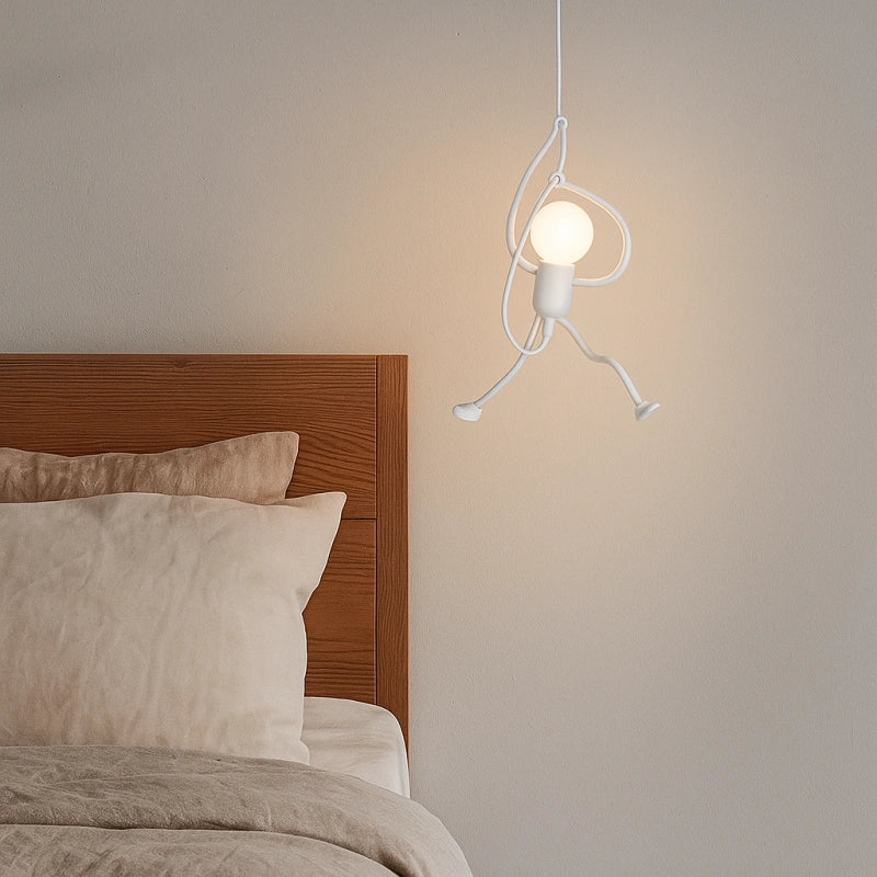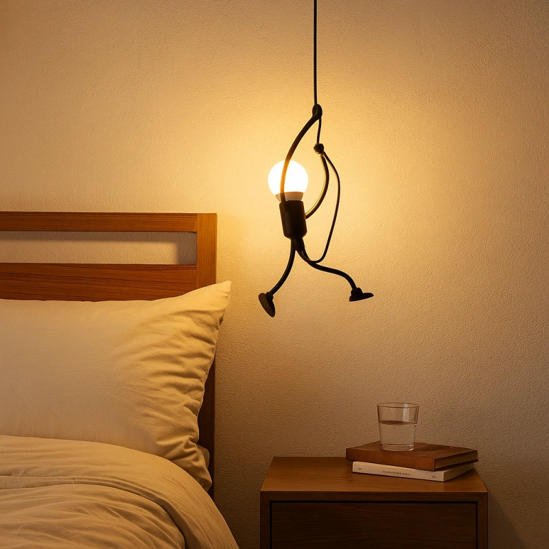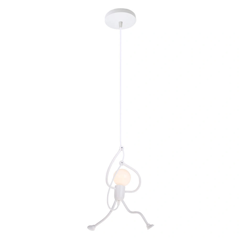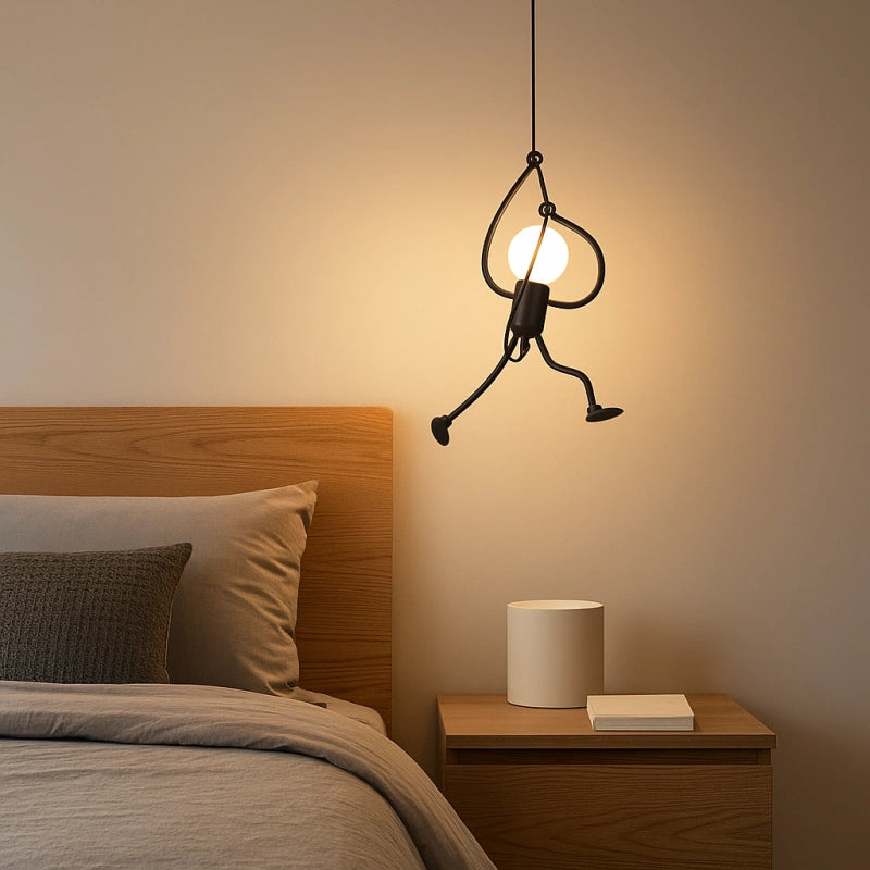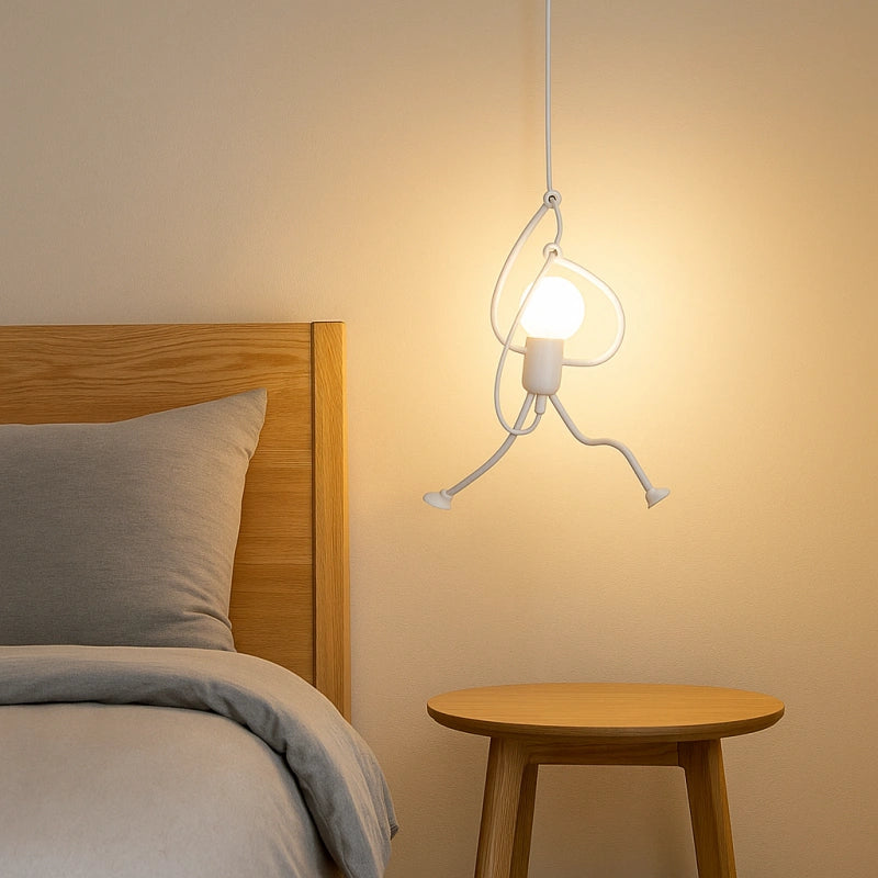 Esta lámpara colgante de hierro con diseño creativo de pequeño hombre aporta un toque original y divertido al cabecero. Su cuerpo metálico de alta calidad y el plafón de hierro grueso garantizan resistencia y durabilidad. Disponible en blanco y negro con varias medidas, incorpora casquillo E27 compatible con diferentes fuentes de luz, uniendo estilo y funcionalidad.