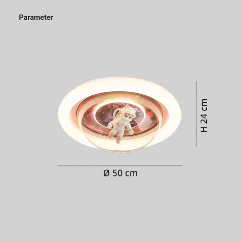 Esta lampara de techo astronauta es una opción ideal para iluminar el dormitorio infantil con un diseño atractivo y funcional. Fabricada en resina con figura de astronauta de estilo cartoon, ofrece un acabado duradero, ecológico y resistente al color. Su pantalla acrílica garantiza una luz uniforme y suave. Incorpora LED regulable de alta eficiencia, sin parpadeo, que protege la vista y reduce el consumo energético. Certificación CE.