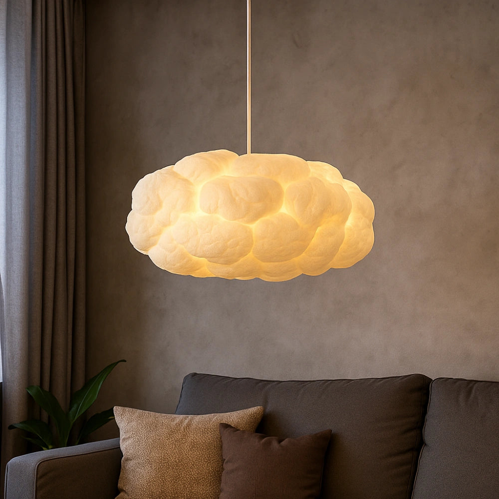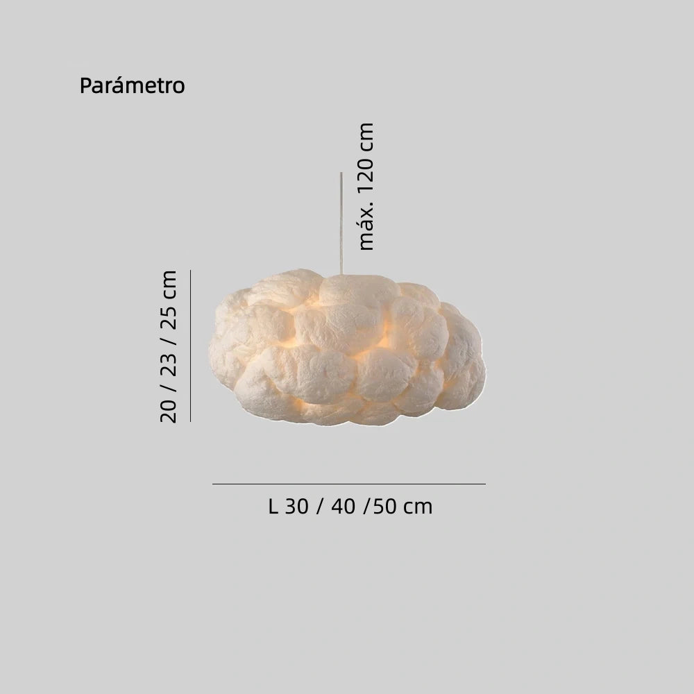 Esta lámpara colgante moderna y creativa, Lámpara Colgante Nube Blanca, está inspirada en las nubes blancas de la naturaleza, evocando una sensación de libertad y belleza. Su diseño delicado da la impresión de que, al extender la mano, podríamos tocar un cielo nublado y suave. La pantalla, que imita la seda, está fabricada con material PVCC ignífugo y aislante, ligero, flexible y fácil de moldear. Combinada con algodón natural desengrasado, su textura es uniforme, ofreciendo una luz suave y cálida.Cuenta con una función de cambio de color en tres tonos, permitiendo ajustarla a tu gusto. La fuente de luz LED, de bajo consumo energético, proporciona una iluminación duradera, respetuosa con el medio ambiente y eficiente.
