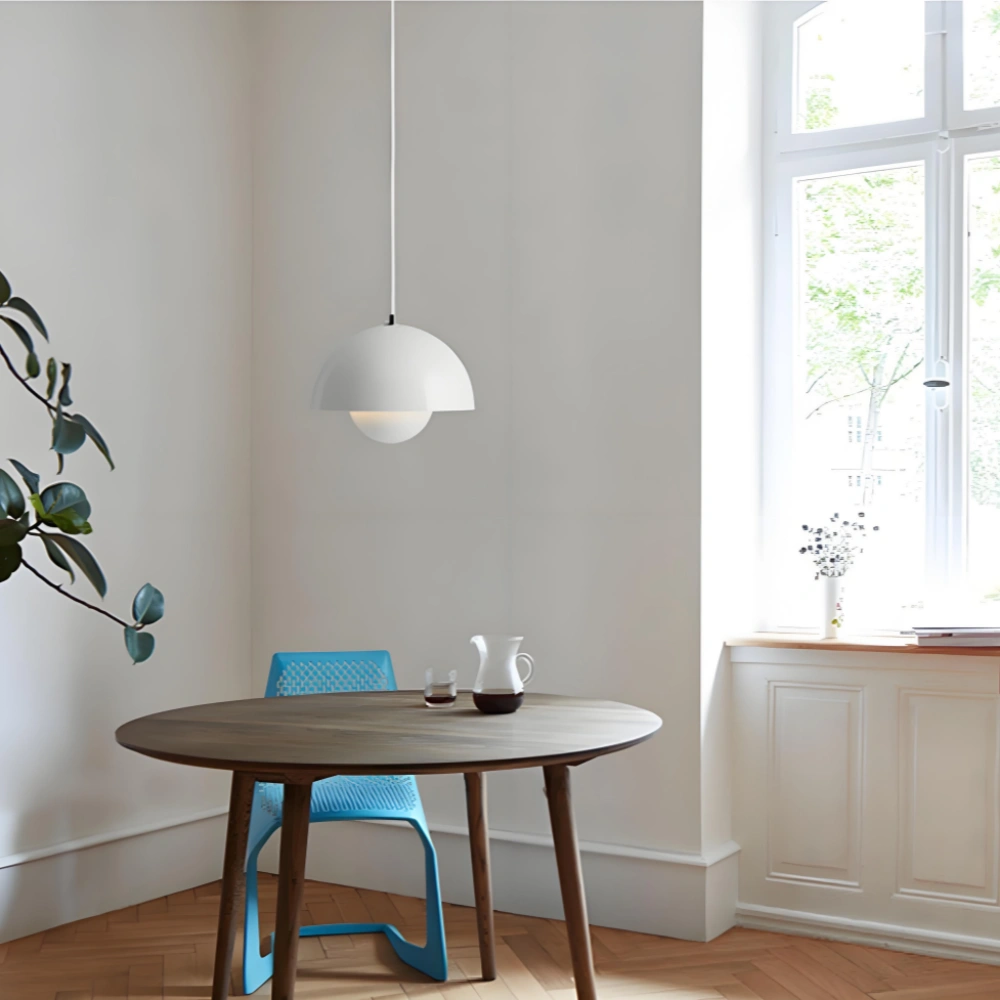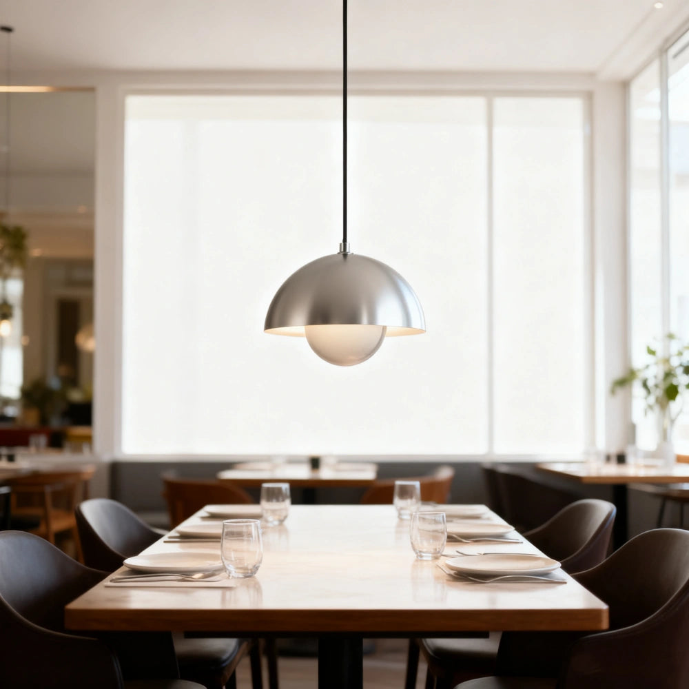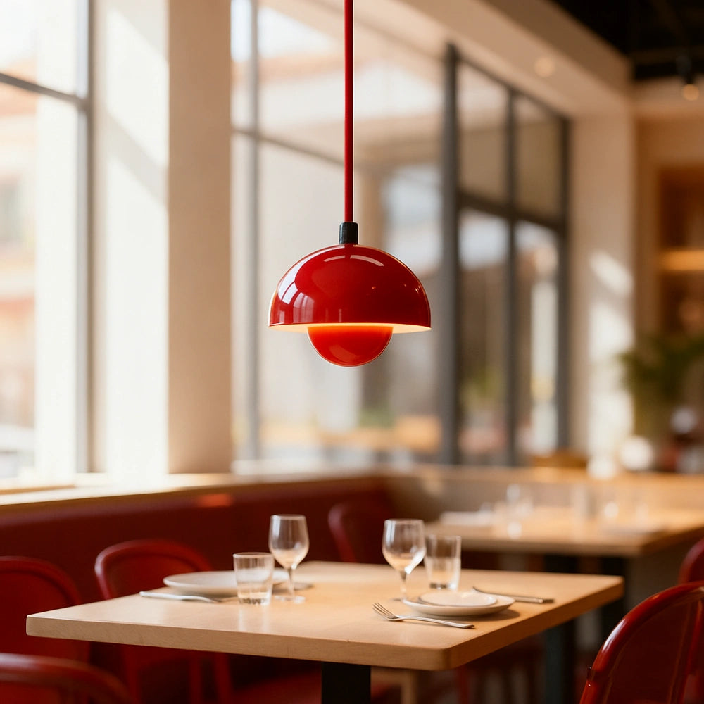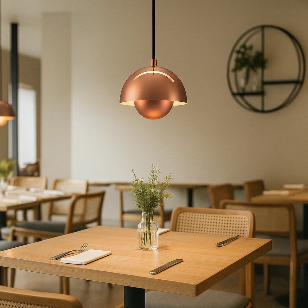 Esta lámpara colgante de diseño moderno en forma de capullo se inspira en la forma natural de un capullo de flor. Fabricada en hierro con un acabado en pintura horneada, ofrece resistencia a la corrosión y al óxido, asegurando una larga durabilidad. La función de cambio de luz en tres colores permite ajustar la iluminación según el ambiente y las necesidades. El casquillo E27 facilita el reemplazo de la bombilla. Disponible en varios colores, añadirá creatividad y calidez a tu restaurante.