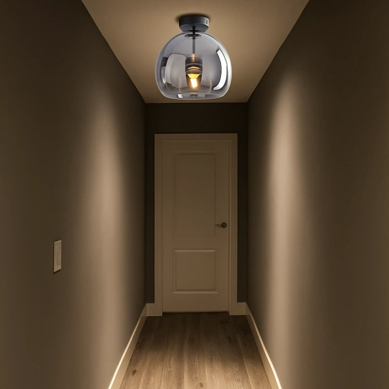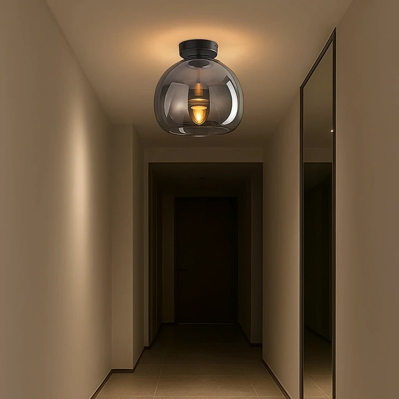 Esta lámpara de techo moderna de latón y vidrio para pasillo combina una pantalla de vidrio exquisita con un cuerpo de latón, emitiendo una luz cálida y suave sin parpadeos visibles que aporta elegancia y calidez al espacio. La pantalla transparente y redondeada difunde la luz de manera uniforme, creando un ambiente cómodo y acogedor en el pasillo. Su acabado refinado y su estructura sencilla resaltan una sensación de alta calidad y se integran armoniosamente con una amplia variedad de estilos de decoración.