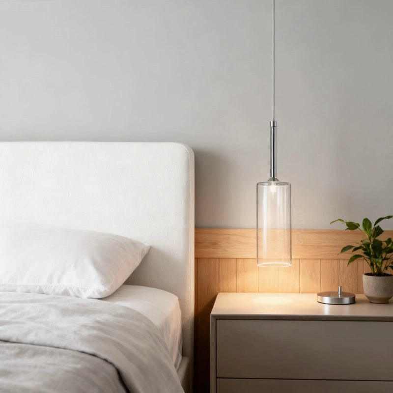 Esta lámpara colgante de vidrio moderna para cabecera de cama está fabricada con vidrio de alta calidad, con un diseño simple y moderno. Su pantalla de vidrio asegura una iluminación suave y uniforme. Disponible en varios colores, no solo ilumina su espacio, sino que también aporta un toque de estilo a su habitación. Es perfecta para añadir un toque de color y personalidad a su dormitorio, adaptándose fácilmente a cualquier estilo de decoración.