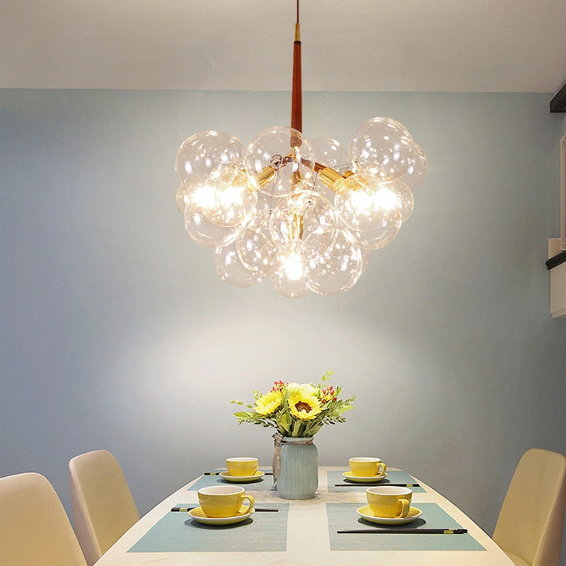 Esta lámpara colgante de vidrio burbuja de diseño creativo presenta un diseño de burbujas. Incorpora una pantalla de vidrio engrosado y translúcido, duradera y fácil de limpiar. El cuerpo de la lámpara de aleación metálica con galvanoplastia ofrece una superficie fina y brillante, resistente a la oxidación y la corrosión, garantizando una larga vida útil. Cuero tejido a mano envuelve el cuerpo de la lámpara, cuero ecológico tejido a mano, resistente y duradero, anticorrosivo y antioxidante, seguro y sin riesgos. Su base de techo engrosada en metal galvanizado es sólida, estilosa y decorativa, con gran capacidad de carga. Equipada con portalámparas estándar E27 resistente a altas temperaturas y luz LED, es la opción ideal para decorar e iluminar comedores o salones.