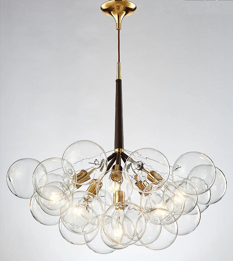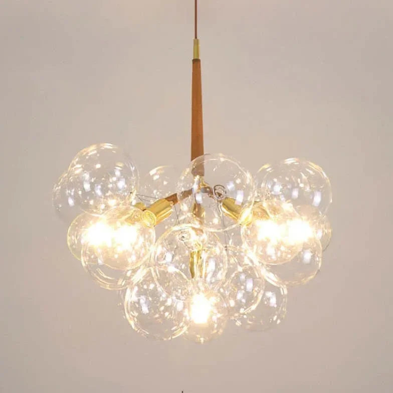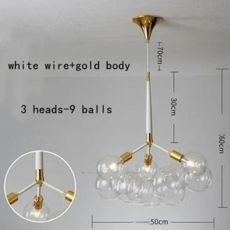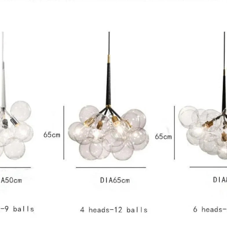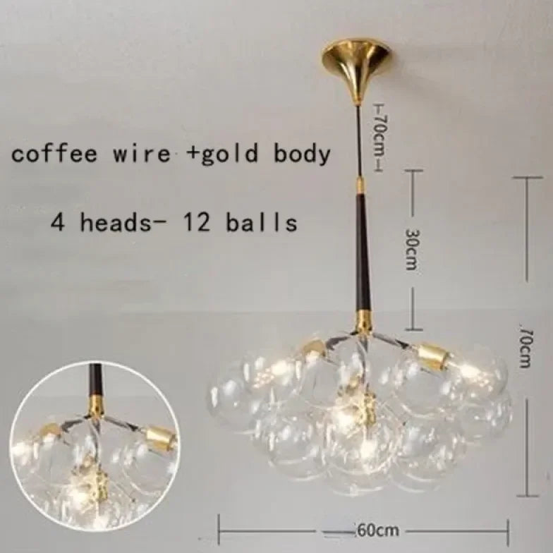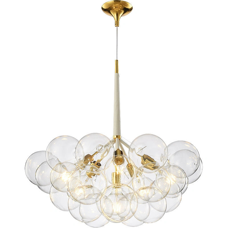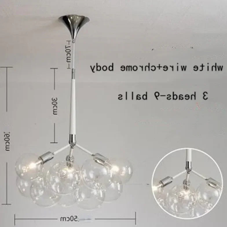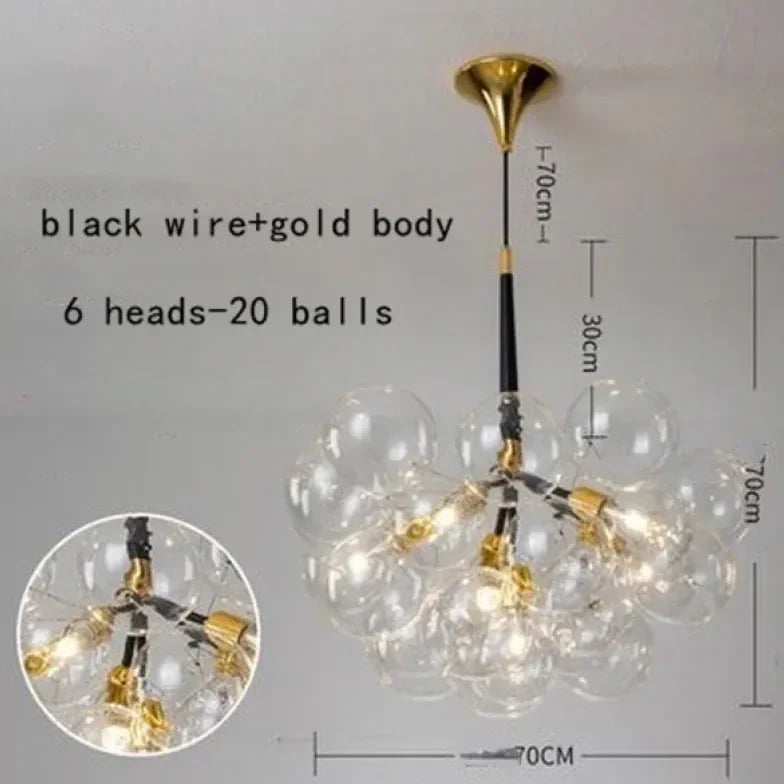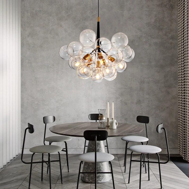 Su diseño tipo burbuja, propio de una lámpara de vidrio tipo burbuja, integra múltiples esferas de cristal que difunden la luz de manera suave gracias a su fuente LED de alta calidad, ofreciendo una iluminación cálida y confortable. Esta lámpara de araña de vidrio crea un ambiente acogedor y moderno, ideal para el hogar.