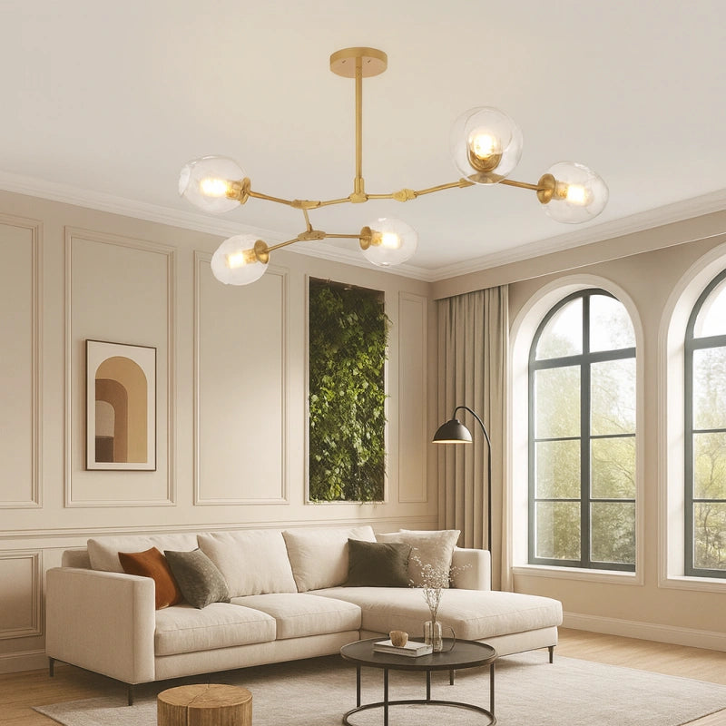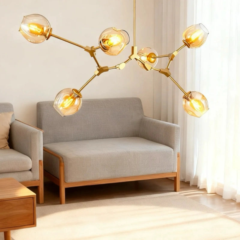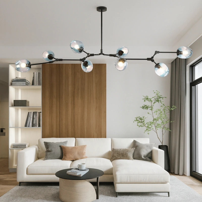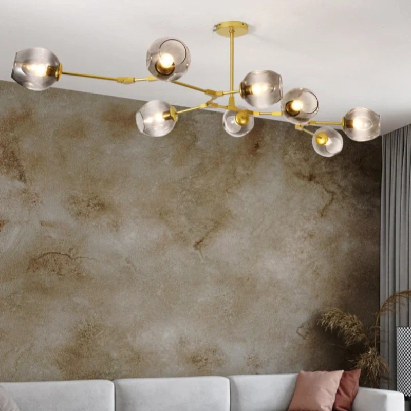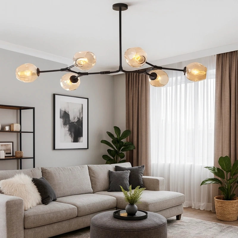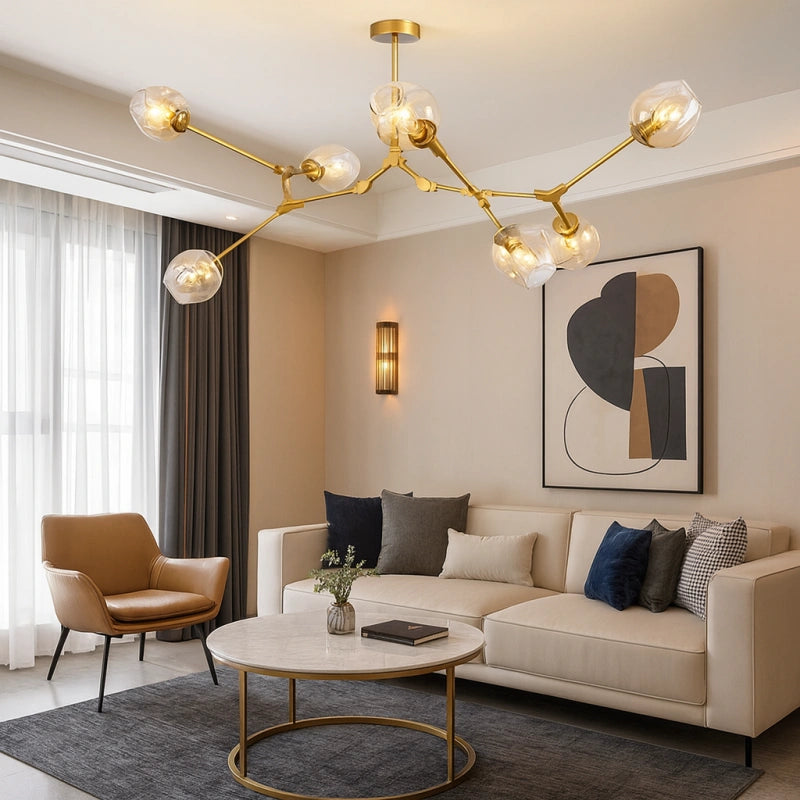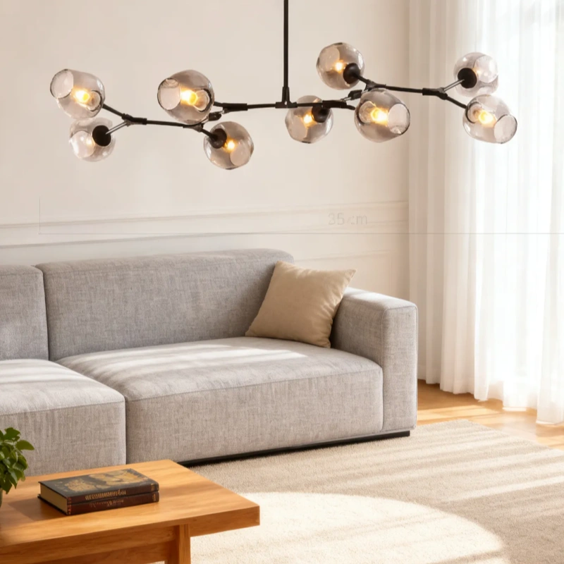 Esta lámpara araña colgante nórdica de vidrio molecular con luz tricolor regulable para salón está fabricada con materiales de alta calidad, como metal resistente y vidrio soplado a mano, ofreciendo una alta translucidez y resistencia al calor. Es la opción ideal para tu salón, disponible en varios colores y estilos, con un soporte giratorio y un diseño versátil que permite crear múltiples formas. La luz suave y agradable cuida tus ojos y realza la estética de tu espacio. Función de iluminación tricolor regulable, que permite cambiar libremente entre luz cálida, luz natural y luz blanca, adaptándose a diferentes ambientes y necesidades de iluminación.