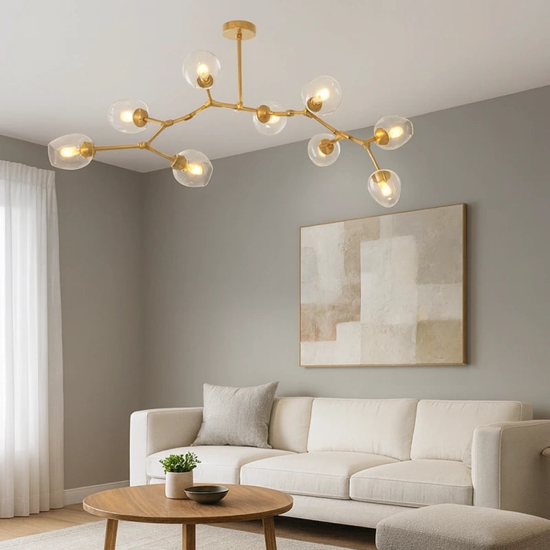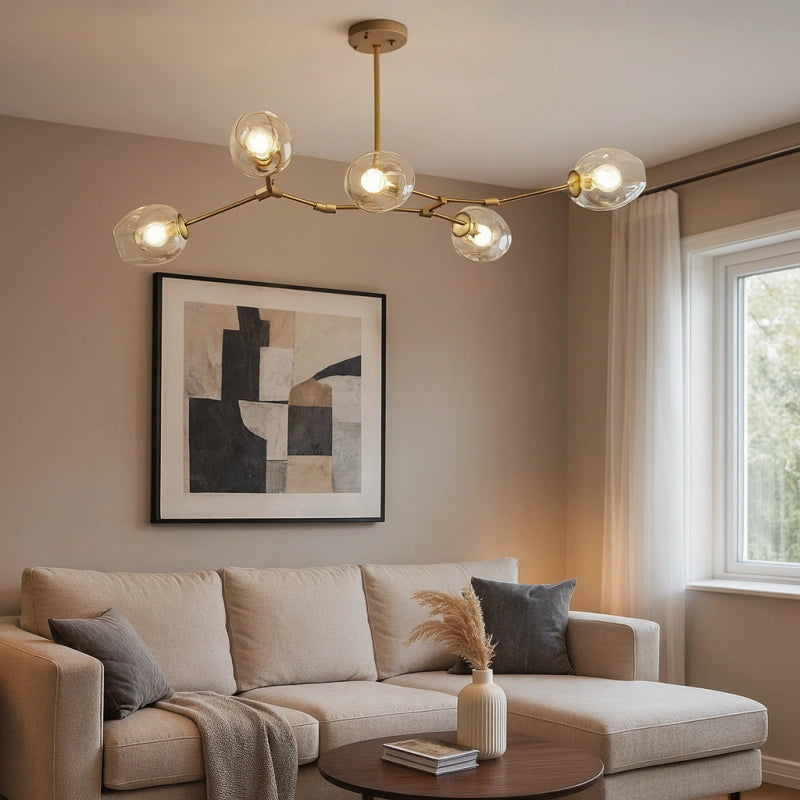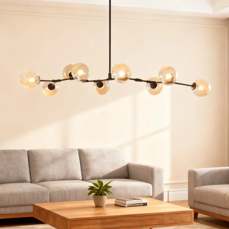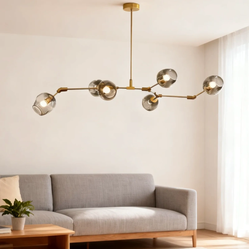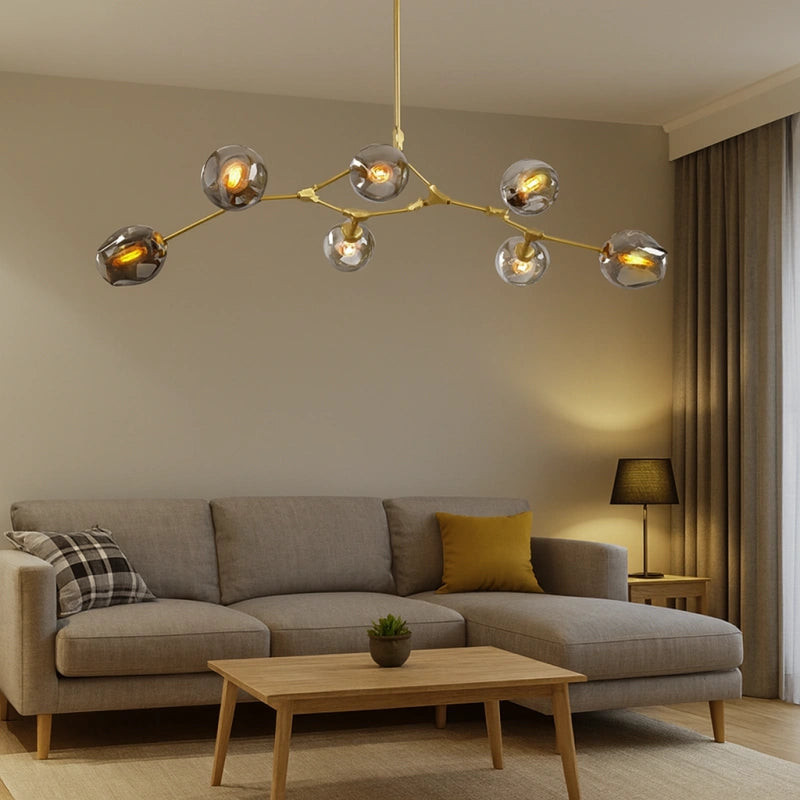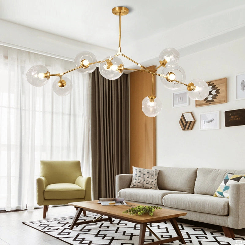 Esta lámpara araña colgante nórdica de vidrio molecular con luz tricolor regulable para salón está fabricada con materiales de alta calidad, como metal resistente y vidrio soplado a mano, ofreciendo una alta translucidez y resistencia al calor. Es la opción ideal para tu salón, disponible en varios colores y estilos, con un soporte giratorio y un diseño versátil que permite crear múltiples formas. La luz suave y agradable cuida tus ojos y realza la estética de tu espacio. Función de iluminación tricolor regulable, que permite cambiar libremente entre luz cálida, luz natural y luz blanca, adaptándose a diferentes ambientes y necesidades de iluminación.
