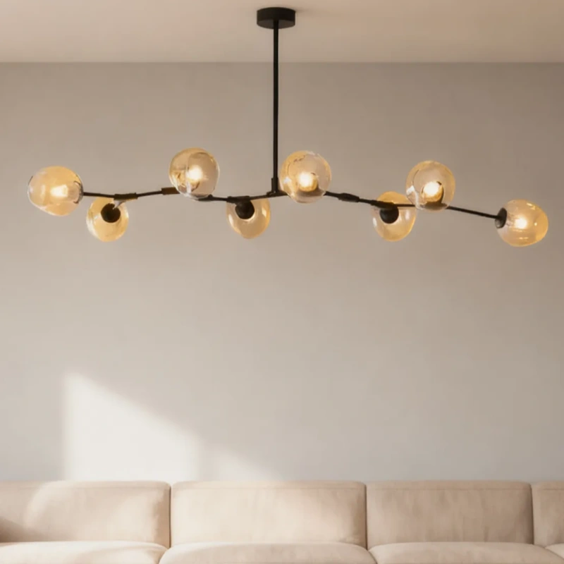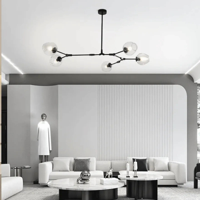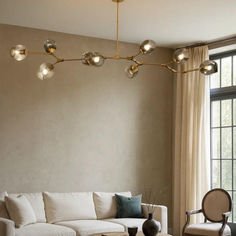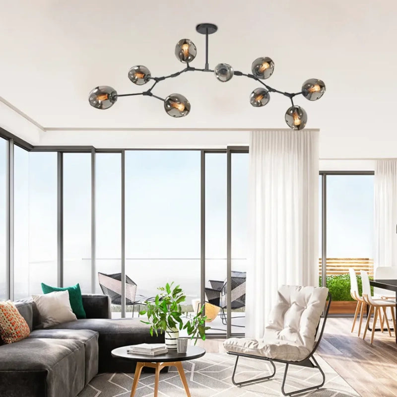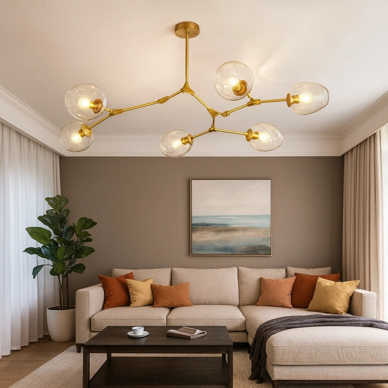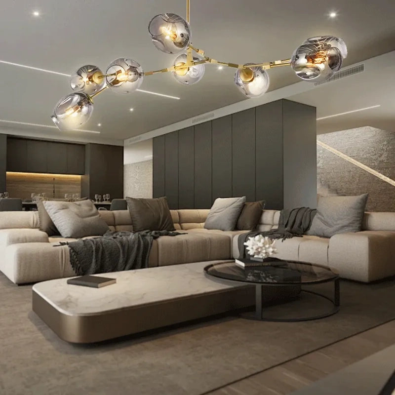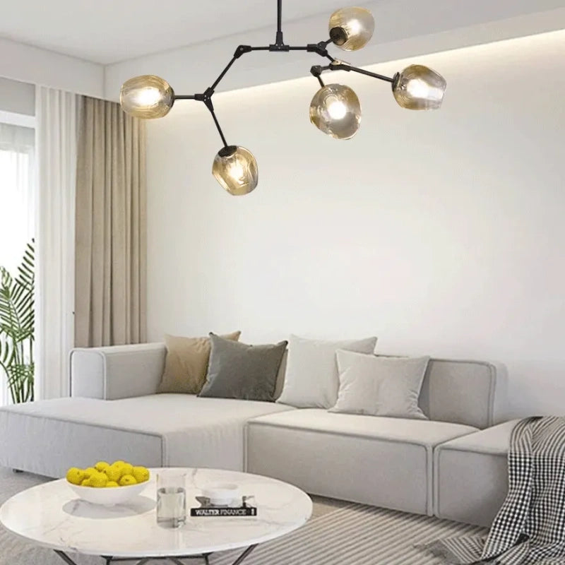 Esta lámpara araña colgante nórdica de vidrio molecular con luz tricolor regulable para salón está fabricada con materiales de alta calidad, como metal resistente y vidrio soplado a mano, ofreciendo una alta translucidez y resistencia al calor. Es la opción ideal para tu salón, disponible en varios colores y estilos, con un soporte giratorio y un diseño versátil que permite crear múltiples formas. La luz suave y agradable cuida tus ojos y realza la estética de tu espacio. Función de iluminación tricolor regulable, que permite cambiar libremente entre luz cálida, luz natural y luz blanca, adaptándose a diferentes ambientes y necesidades de iluminación.