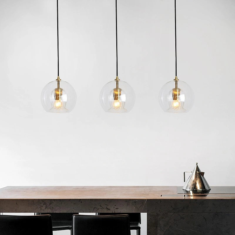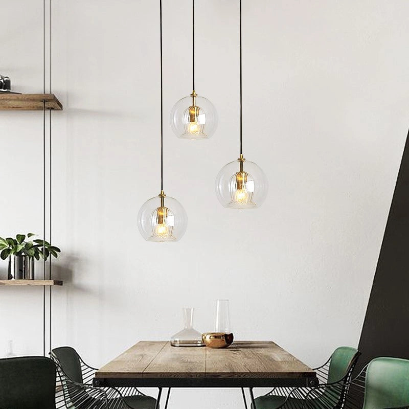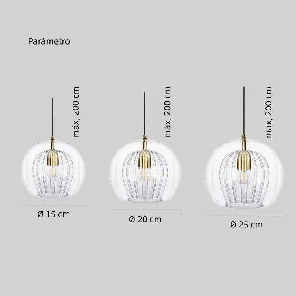 Esta lámpara colgante esférica de vidrio soplado de dos capas moderna presenta un diseño de doble capa, con una capa exterior suave y transparente, y una capa interior decorada con elegantes rayas verticales. El vidrio soplado a mano garantiza una alta transparencia, mientras que el diseño de doble capa la hace más resistente. El cuerpo de cobre electrochapado de alta calidad añade un toque de sofisticación. La luz es suave y no deslumbrante, creando un ambiente cálido y acogedor, sin parpadeos, protegiendo tus ojos mientras ilumina tu vida y proporciona una atmósfera cómoda para las comidas.
